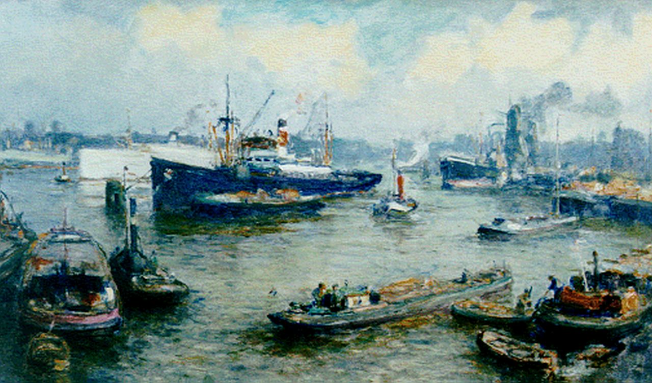 Evert Moll Kunstwerk • Gemälde • zuvor zu verkaufen Harbour activities, Rotterdam