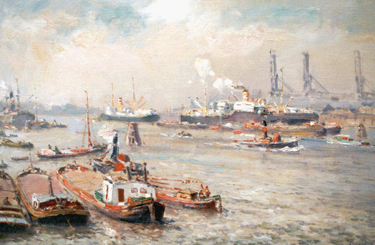 Evert Moll | Lebhafter Hafen von Rotterdam, Öl auf Leinwand, 40,1 x 60,5 cm, Unterzeichnet u.l.