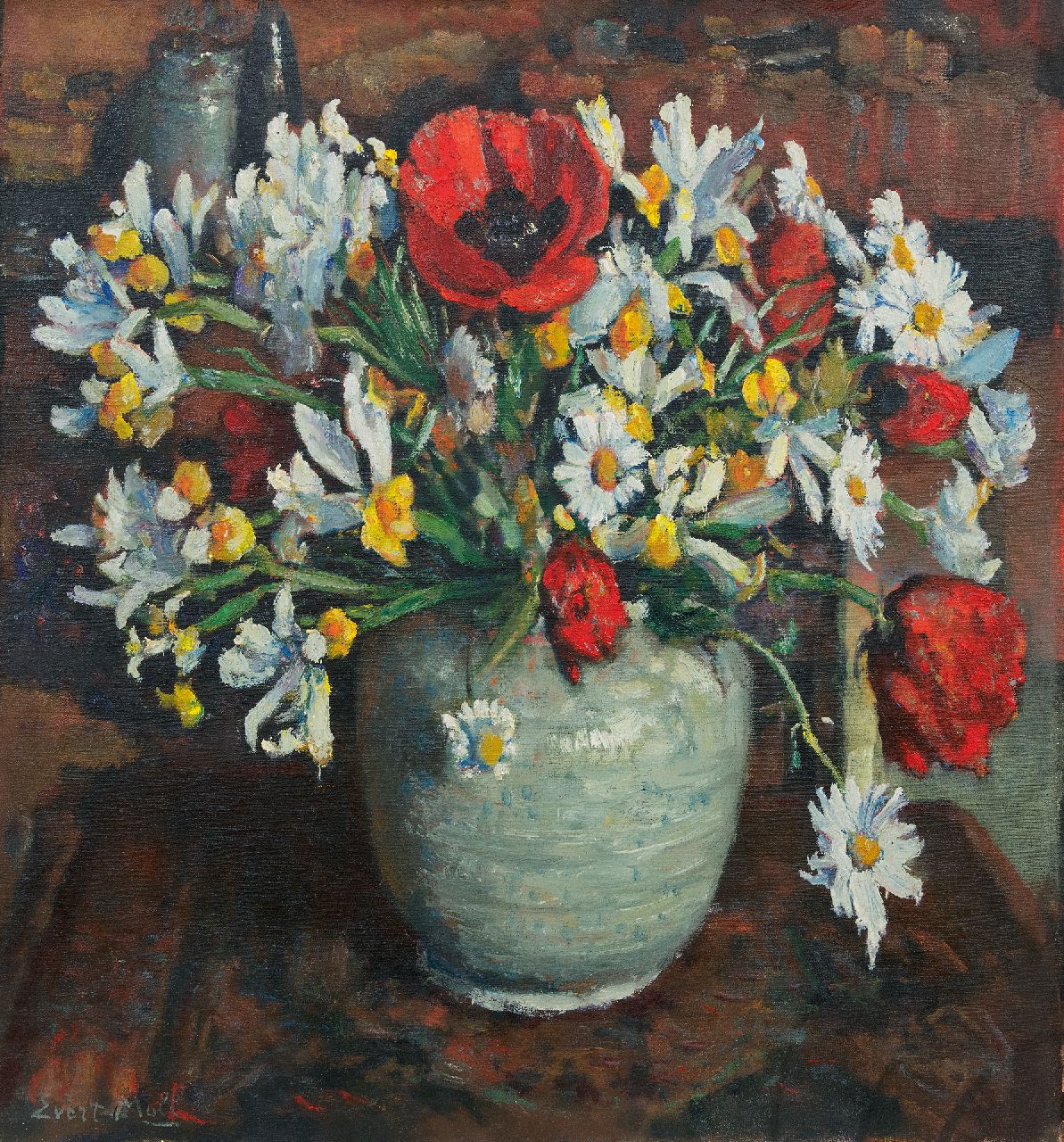 Evert Moll Kunstwerk • Gemälde • zuvor zu verkaufen Mohn und Gänseblümchen
