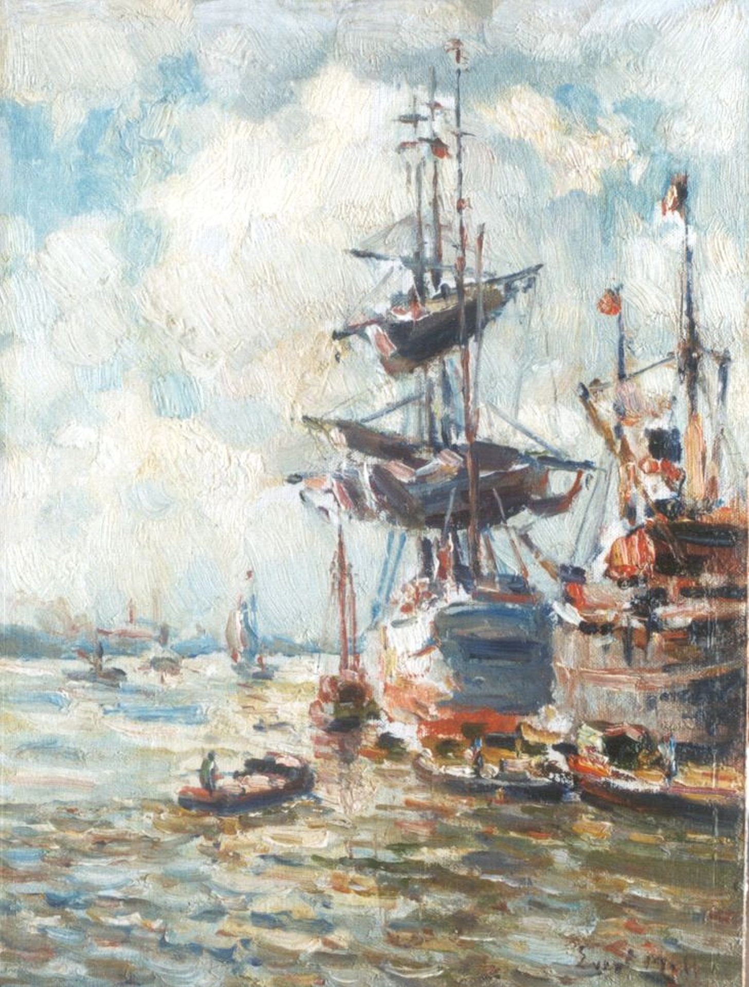 Evert Moll Kunstwerk • Gemälde • zuvor zu verkaufen Ships and a three-master in the Rotterdam Harbour