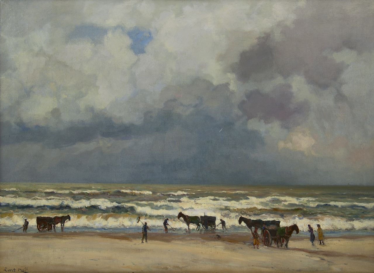 Evert Moll Kunstwerk • Gemälde • zuvor zu verkaufen Shrimp fishing on the beach