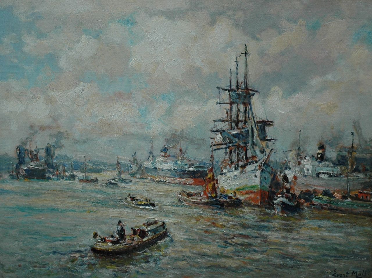 Evert Moll Kunstwerk • Gemälde • zuvor zu verkaufen The harbour of Rotterdam