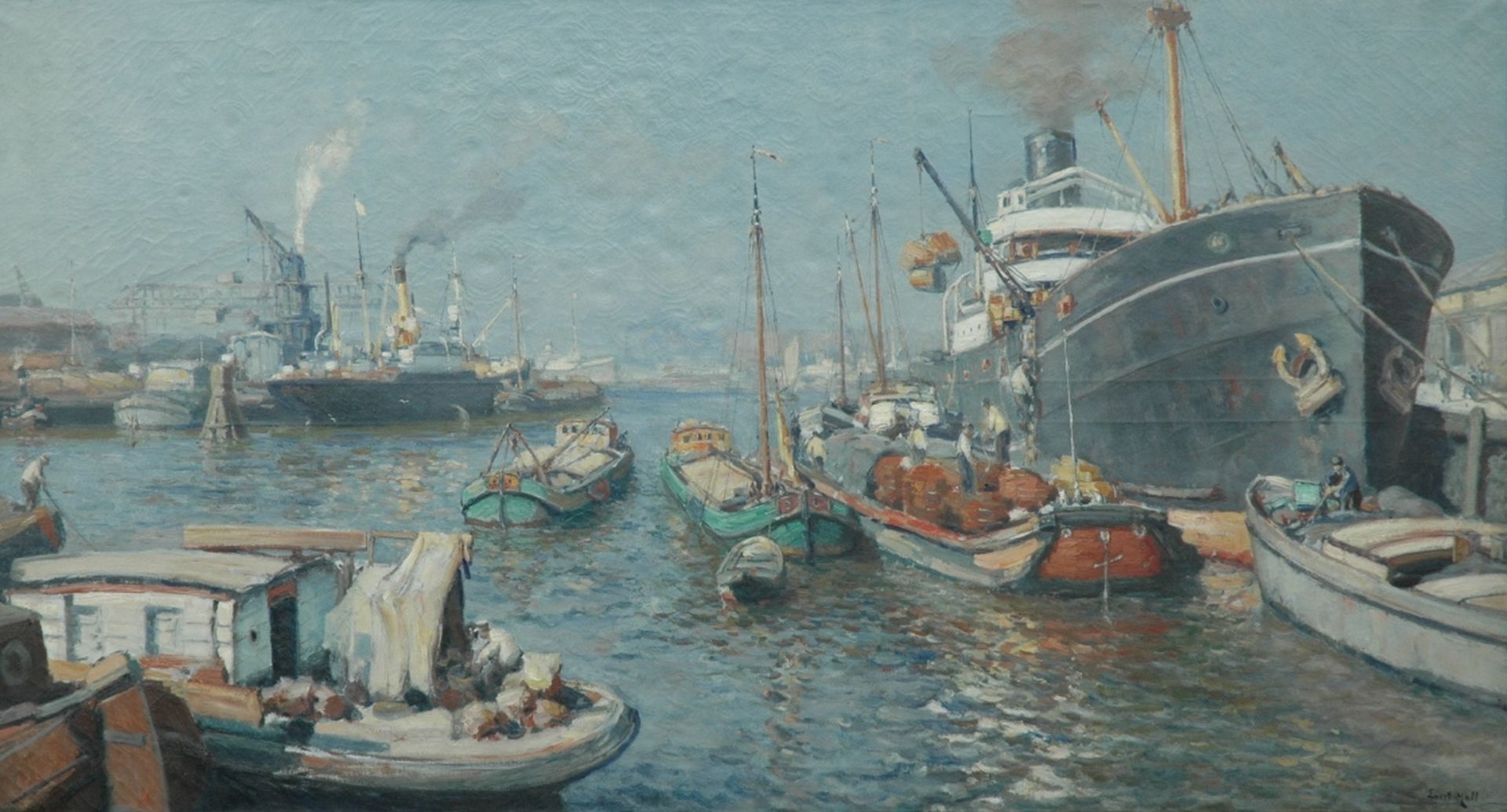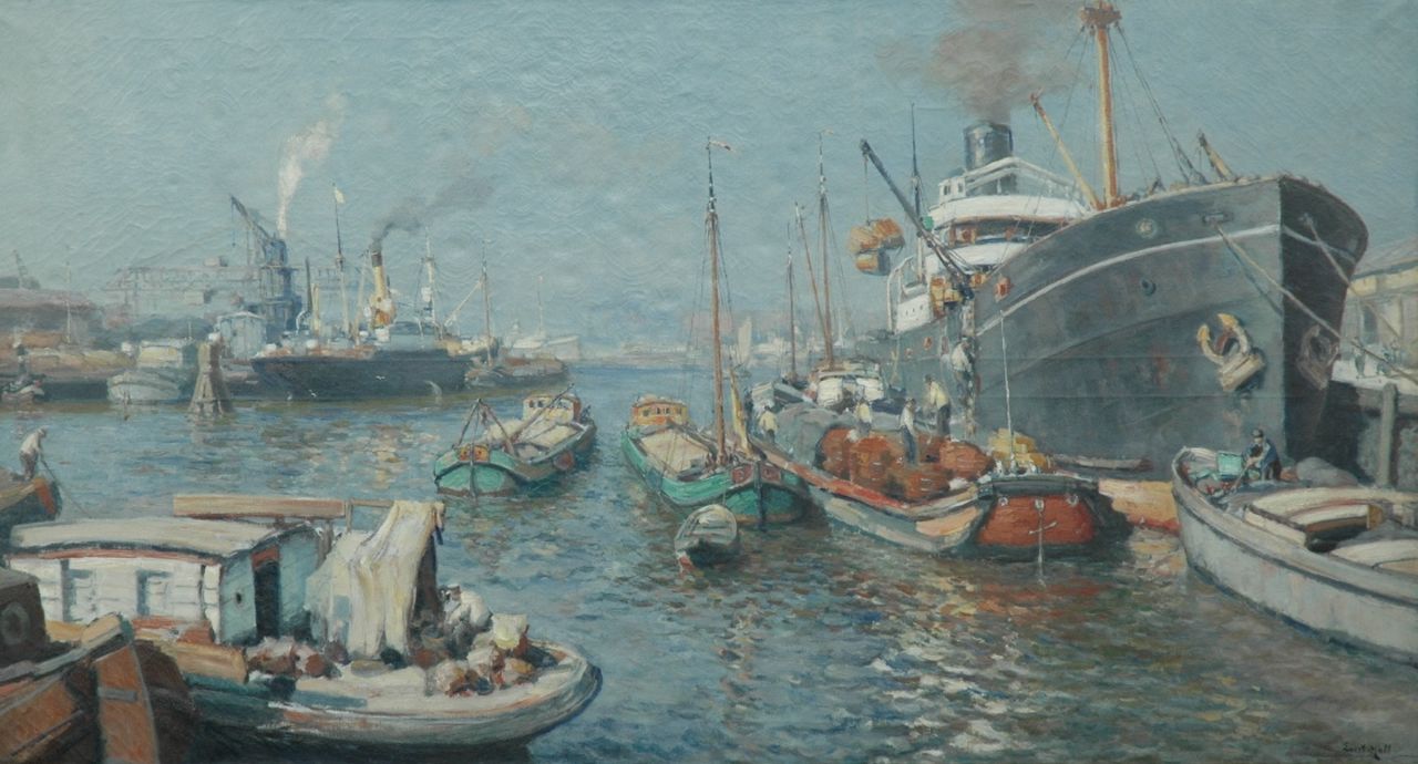 Evert Moll Kunstwerk • Gemälde • zuvor zu verkaufen View of the harbour of Katendrecht, Rotterdam