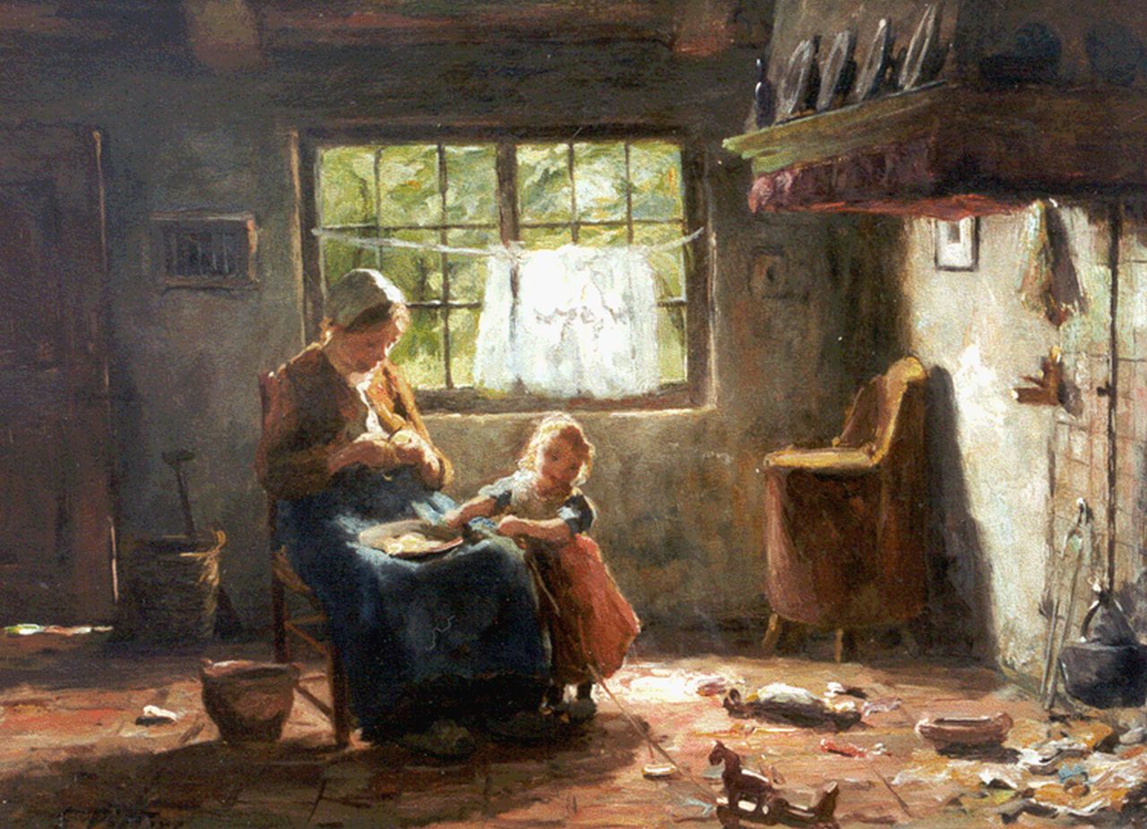 Evert Pieters Kunstwerk • Gemälde • zuvor zu verkaufen Interior with mother and child