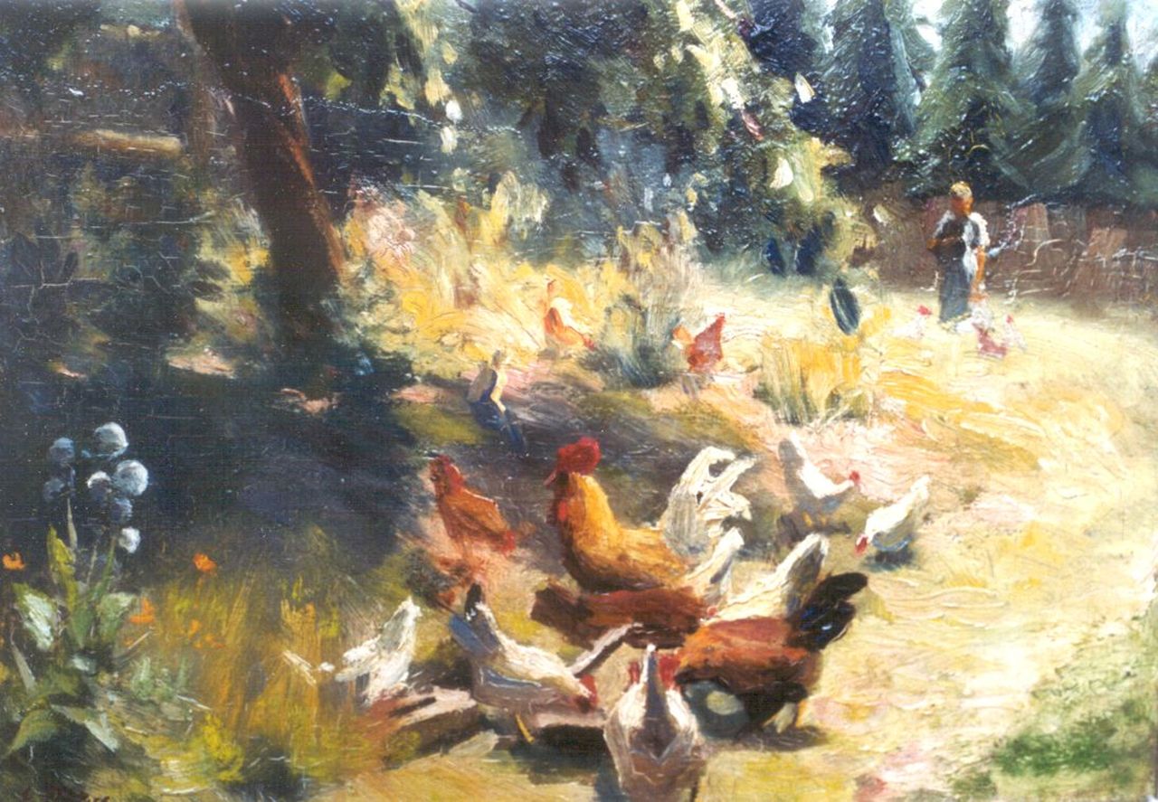 Evert Pieters Kunstwerk • Gemälde • zuvor zu verkaufen Chickens in an orchard