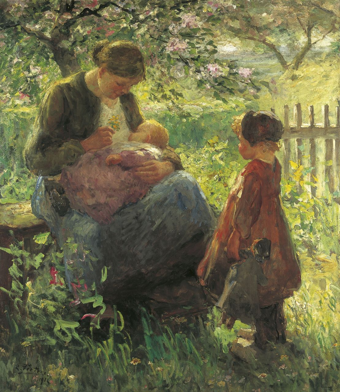 Evert Pieters, geboren 1856 in Amsterdam, reiste ab nach der Akademie der bildenden Künste in Antwerpen im Alter von 23 Jahren. Nach einem Aufenthalt in Belgien und Paris ließ er sich in Blaricum nieder, wo ihn die Gooi-Bauernbevölkerung dazu inspirierte, sonnige Bauerninterieurs von Müttern mit spielenden Kindern und Gärten in voller Blüte zu malen. Seine südländische, farbenfrohe Palette unterscheidet ihn von anderen Gooi-Malern wie Neuhuys und Kever. Während dieser Zeit in Gooi freundete sich die Familie Pieters mit den Kunstsammlern William und Anna Singer an, die ebenfalls Werke von Pieters kauften. Evert Pieters war mit seiner Arbeit sehr erfolgreich, insbesondere bei den Amerikanern, die unser Land besuchten. Der Maler zeichnete sich auch durch das Malen von Strandszenen mit Garnelen- und Muschelfischern in Katwijk aus. Nach 1920 malte er eine Reihe von Porträts und Akten von verträumten Impressionisten.