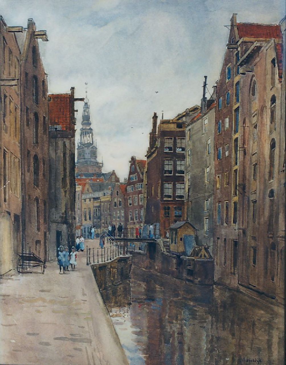 Felicien Bobeldijk Kunstwerk • Aquarell • Zeichnung • zuvor zu verkaufen A view of the Oude Kolk Amsterdam, with the Montelbaanstoren beyond