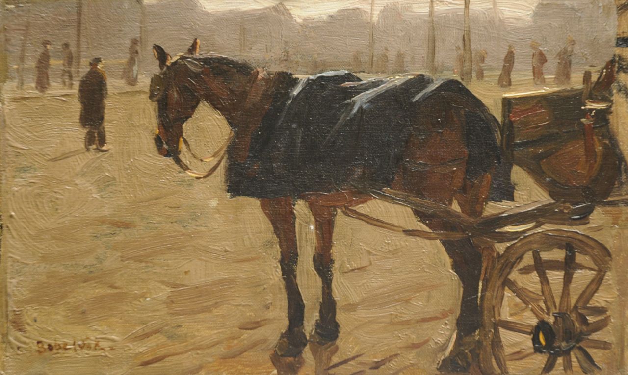 Felicien Bobeldijk Kunstwerk • Gemälde • zuvor zu verkaufen Wartendes Pferd vor einer Kutsche