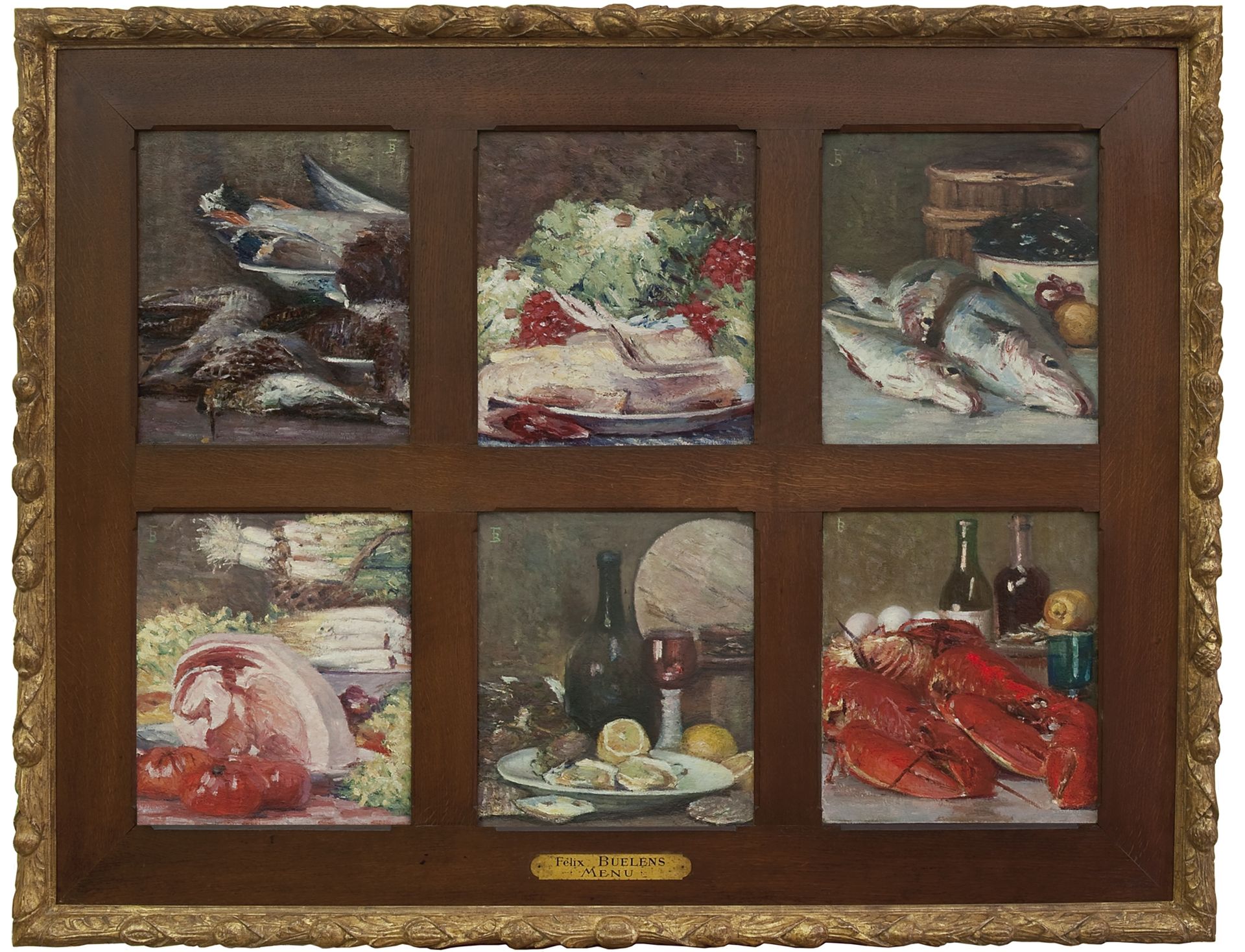 Félix Buelens Kunstwerk • Gemälde • zuvor zu verkaufen Menu - six paintings in one frame