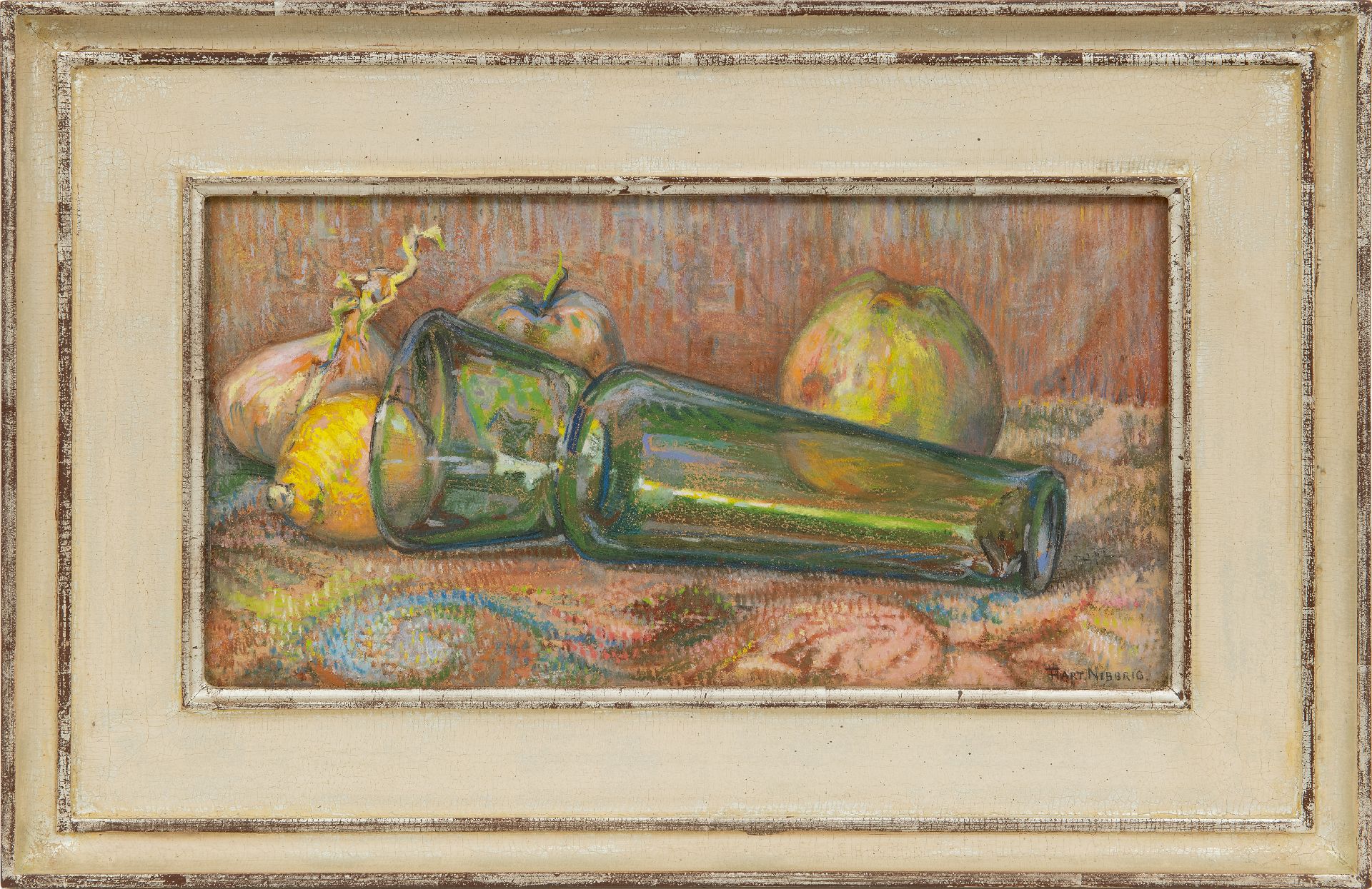 Ferdinand Hart Nibbrig Kunstwerk • Aquarell • Zeichnung • zuvor zu verkaufen Stilleben mit grüner Vase und Äpfel
