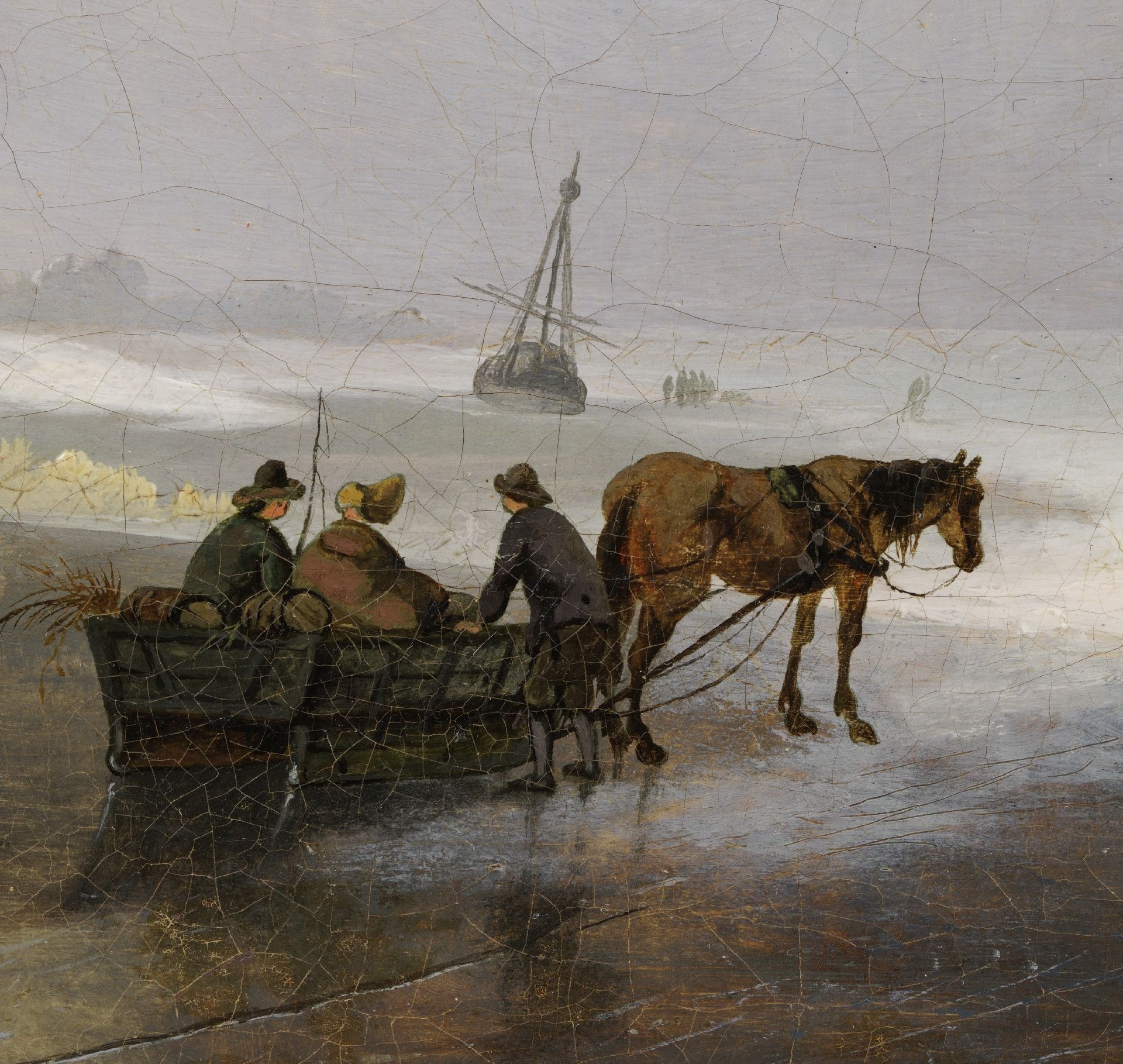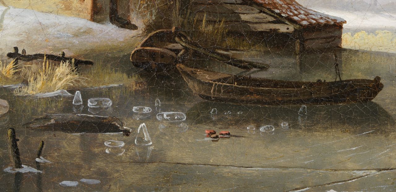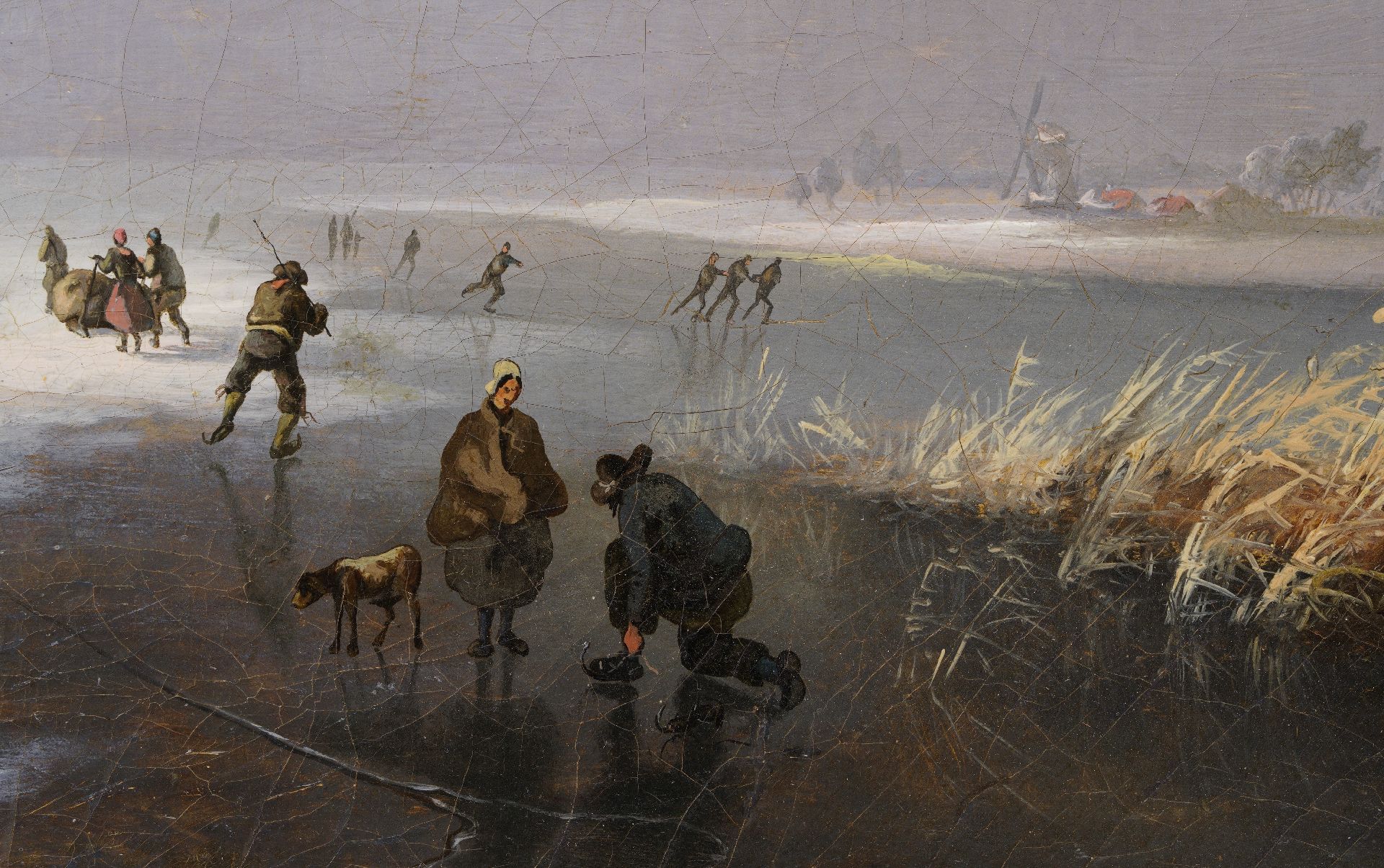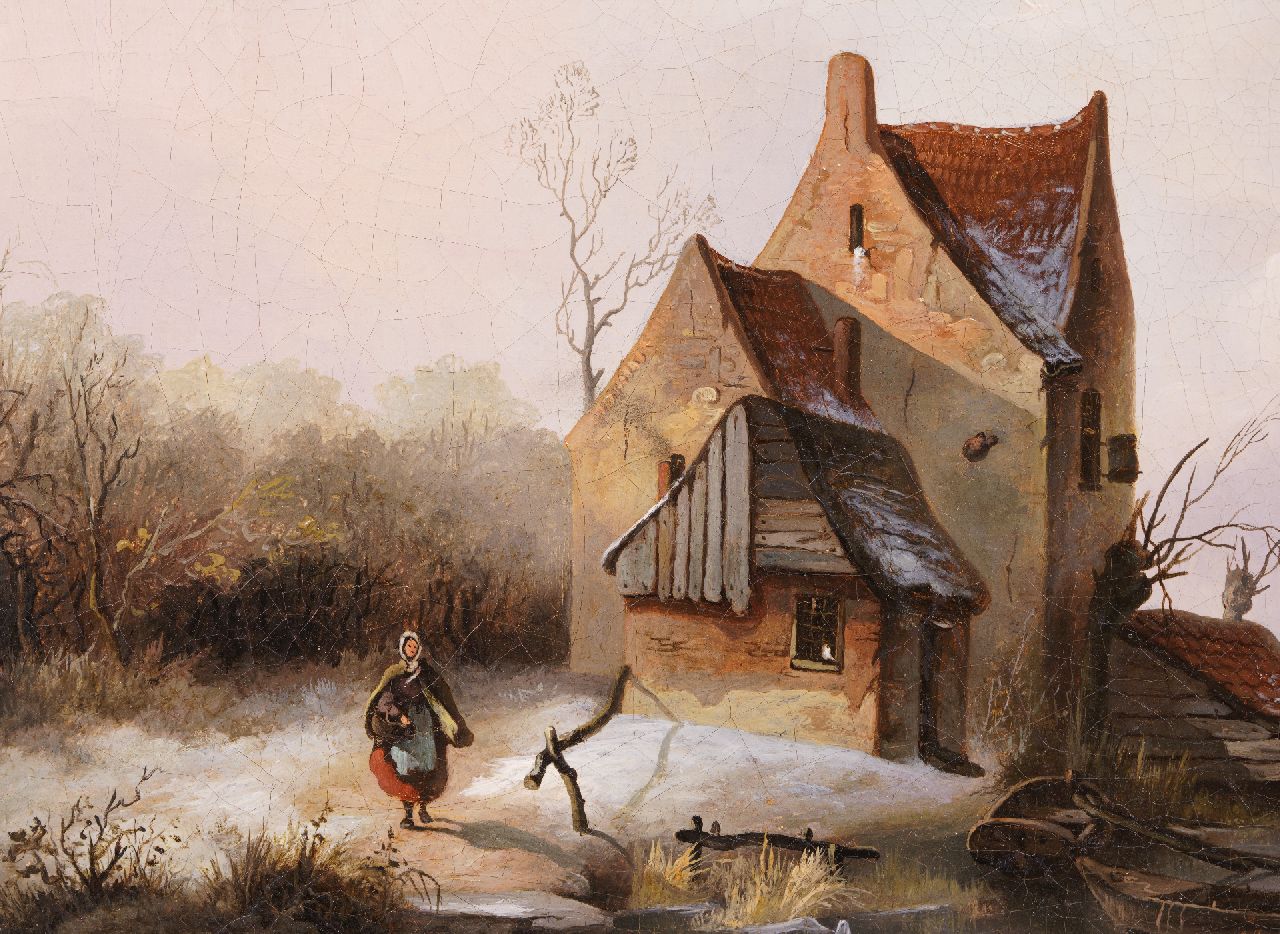 Ferdinand Hendrik Sijpkens Kunstwerk • Gemälde • zu verkaufen Gefrorene Flusslandschaft mit Schlittschuhläufern