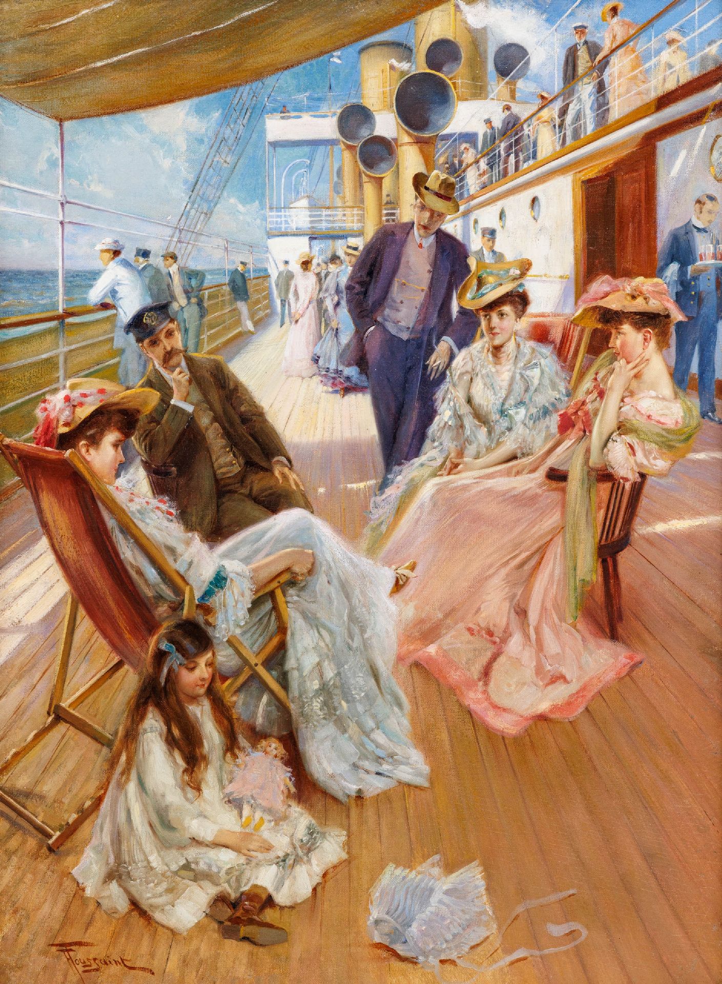 Der Belgische Maler Fernand Toussaint war ein Schüler des damals bekannten Porträt- und Historiemalers J.F. Portaels. Er malte Landschaften, Blumenstilleben und namentlich Frauenporträts. Diese fanden bei vielen Zeitgenossen Anklang wegen der Eleganz und der lockeren Ausführung, kombiniert mit schlichten, stimmungsvollen Farben und einer lockeren, impressionistischen Wiedergabe des Gegenstandes.