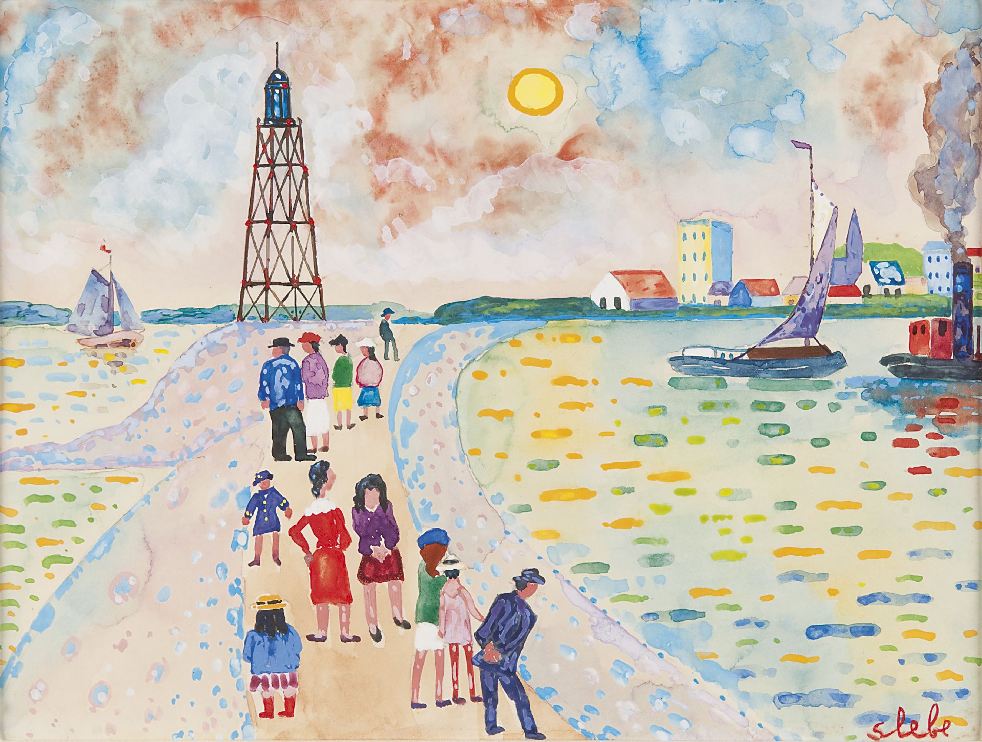 Slebe (Ferdinand Joseph Sleebe) F.  | Ferry Slebe (Ferdinand Joseph Sleebe), A stroll along the harbour, Aquarell auf Papier 25,2 x 32,6 cm, signed l.r.