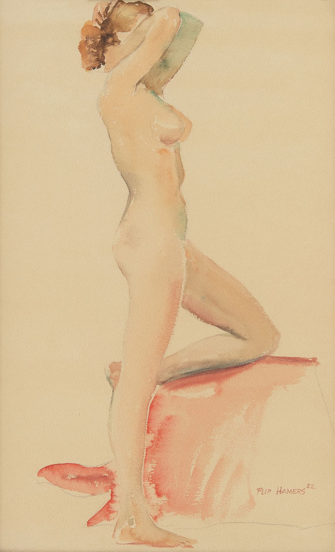 Flip Hamers Kunstwerk • Aquarell • Zeichnung • zuvor zu verkaufen Stehender Akt