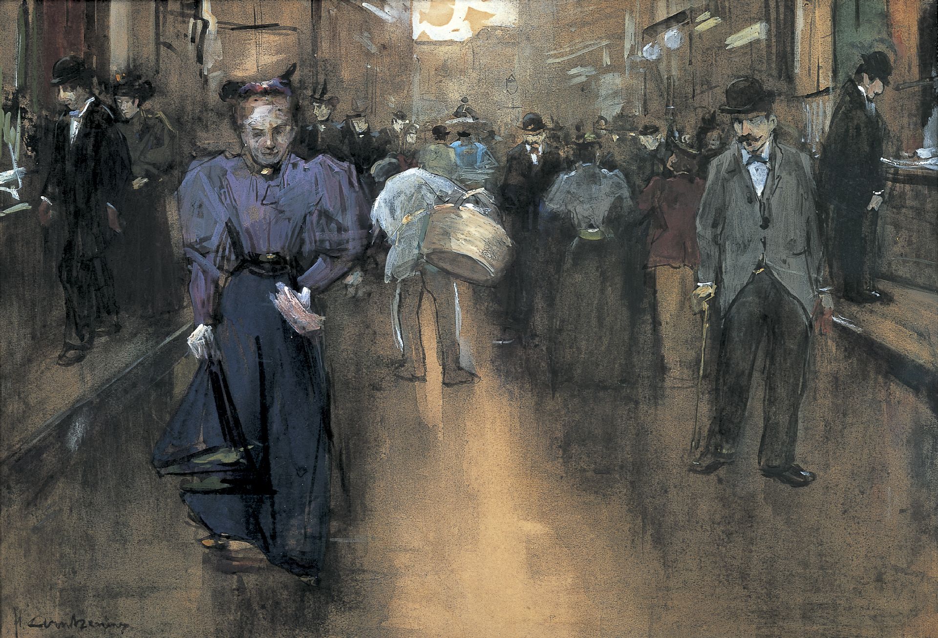 Schwarze Kreide, Aquarell und Gouache auf Papier 28,0 x 41,5 cm, signed l.l.