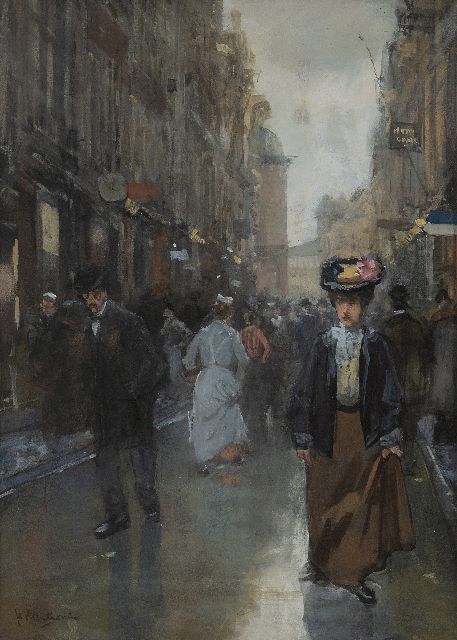 Floris Arntzenius bekam seine Ausbildung an der Rijksacademie zu Amsterdam, zusammen mit Isaac Israels, Willem Witsen und auch G.H.Breitner, dessen impressionistische Art und Weise in der er malte Arntzenius sehr bewunderte. Nach einem weiteren Lehrjahr an der Akademie von Antwerp verlegte er sich in Amsterdam auf das Malen von Landschaften und Stadtansichten. Wirklichen Erfolg hatte er erst nach seinem Umzug im Jahre 1892 nach Haag, als er anfing spontane Impressionen vom lebhaften Haager Stadtleben zu malen, am liebsten bei Nebel oder regnerischem Wetter. Er malte auch Landschaften, Strände, mit Figuren und Porträts.