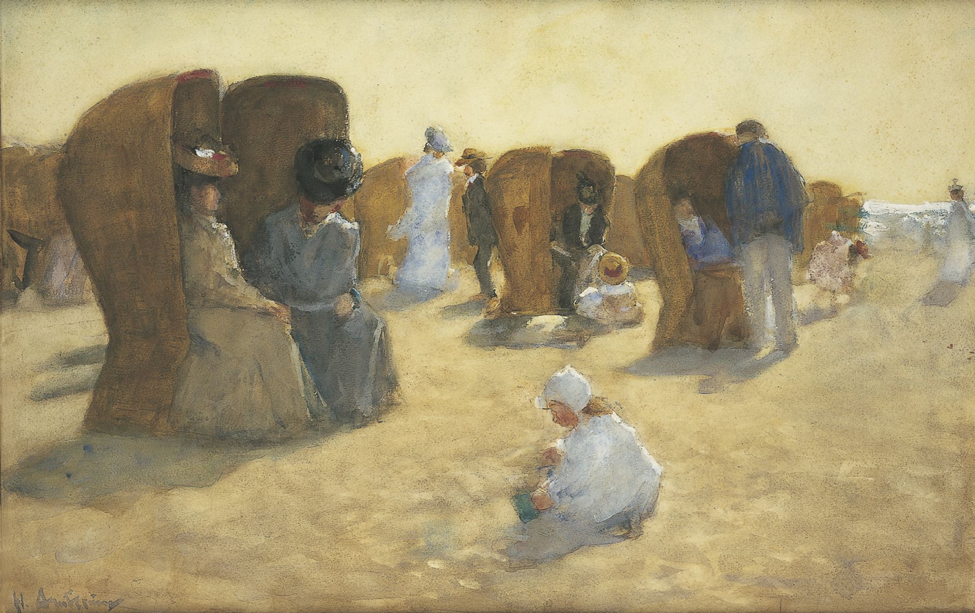 Floris Arntzenius Kunstwerk • Aquarell • Zeichnung • zuvor zu verkaufen Elegant bathers on the beach of Scheveningen