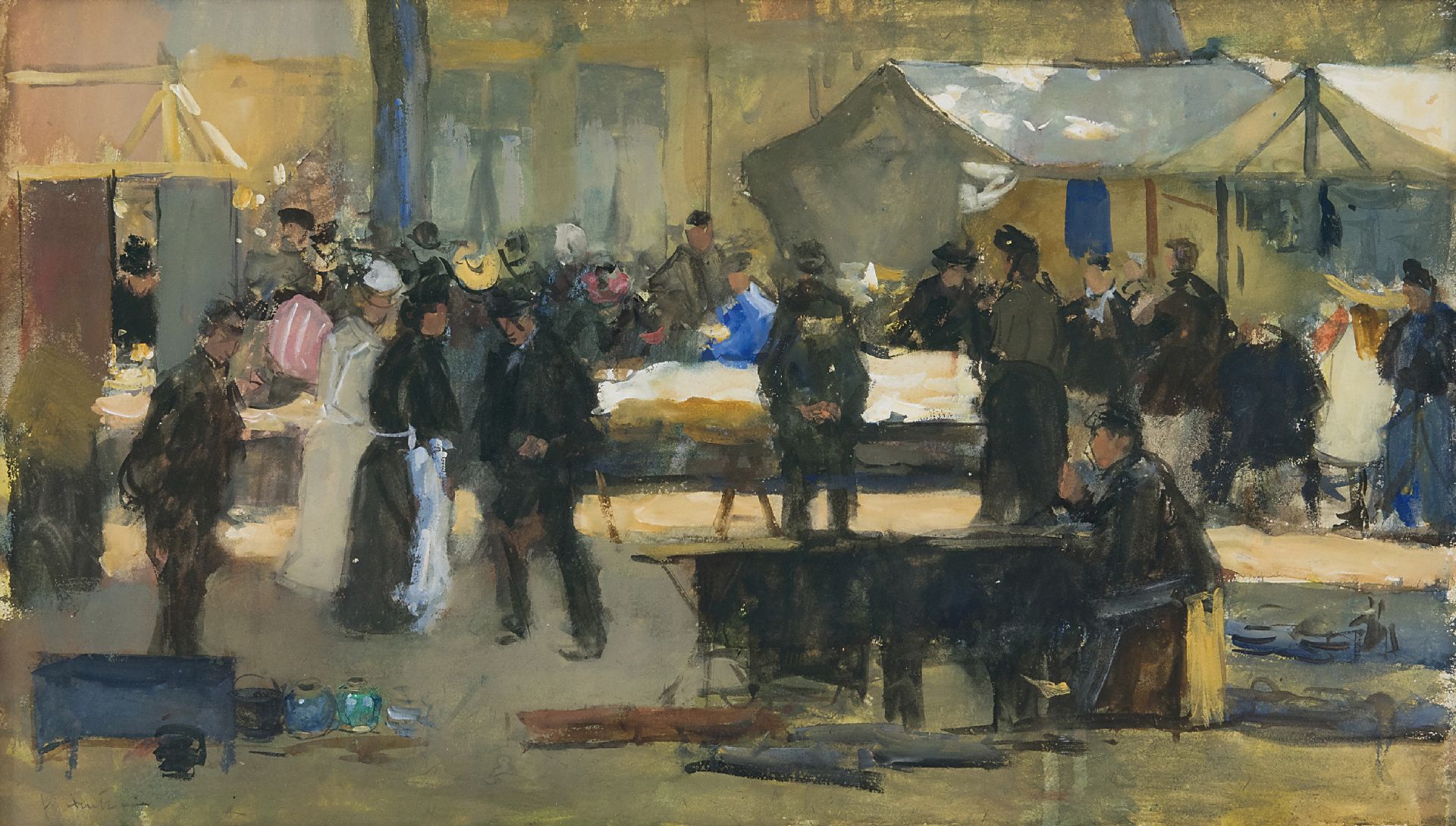 Floris Arntzenius Kunstwerk • Aquarell • Zeichnung • zu verkaufen Haager Textilmarkt