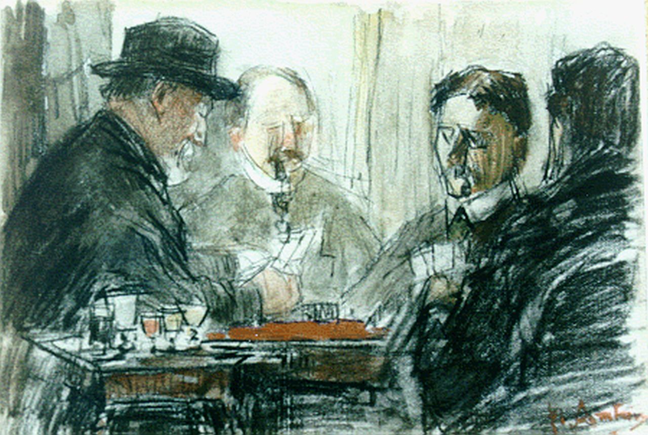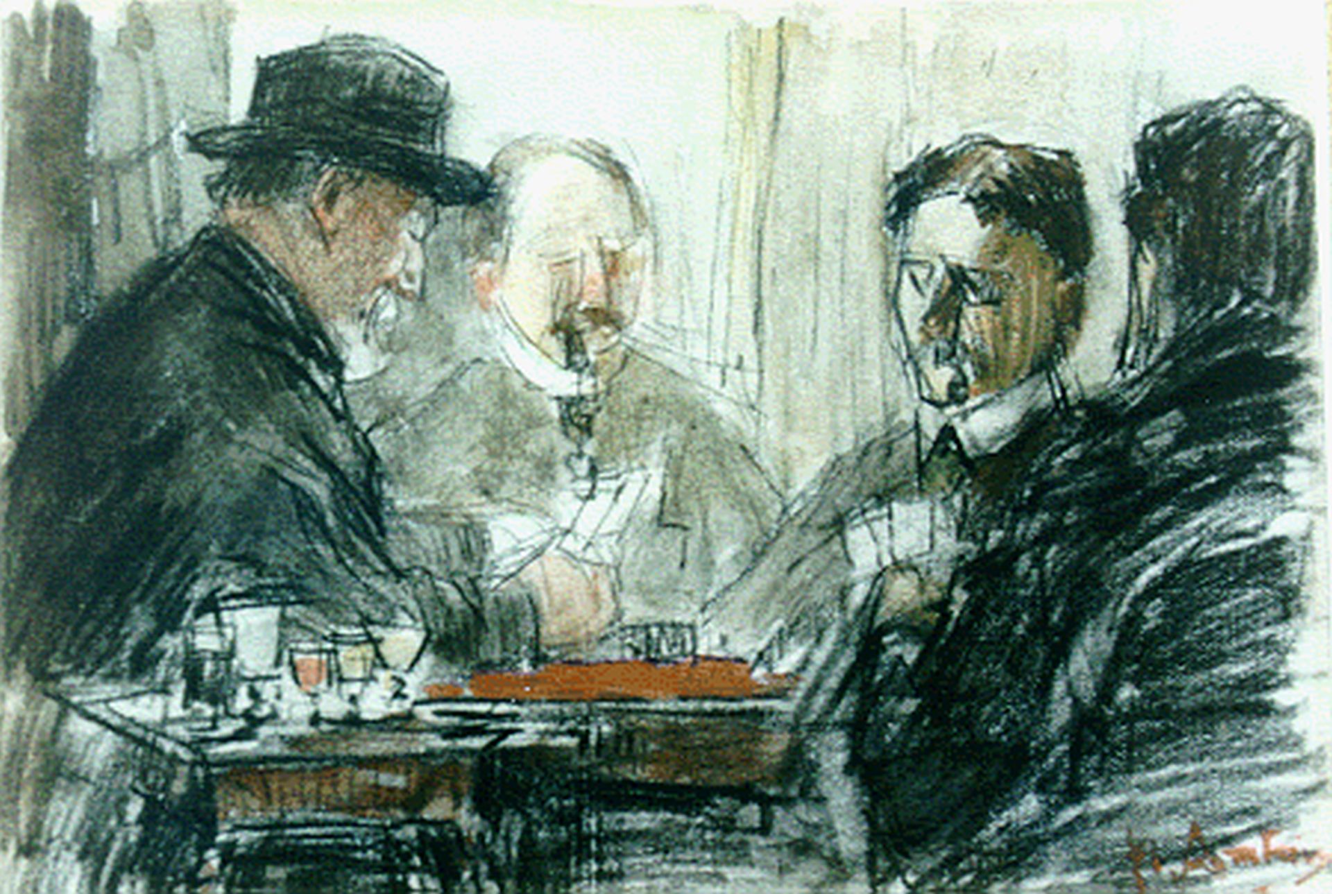 Floris Arntzenius Kunstwerk • Aquarell • Zeichnung • zuvor zu verkaufen Playing chess, Pulchri Studio