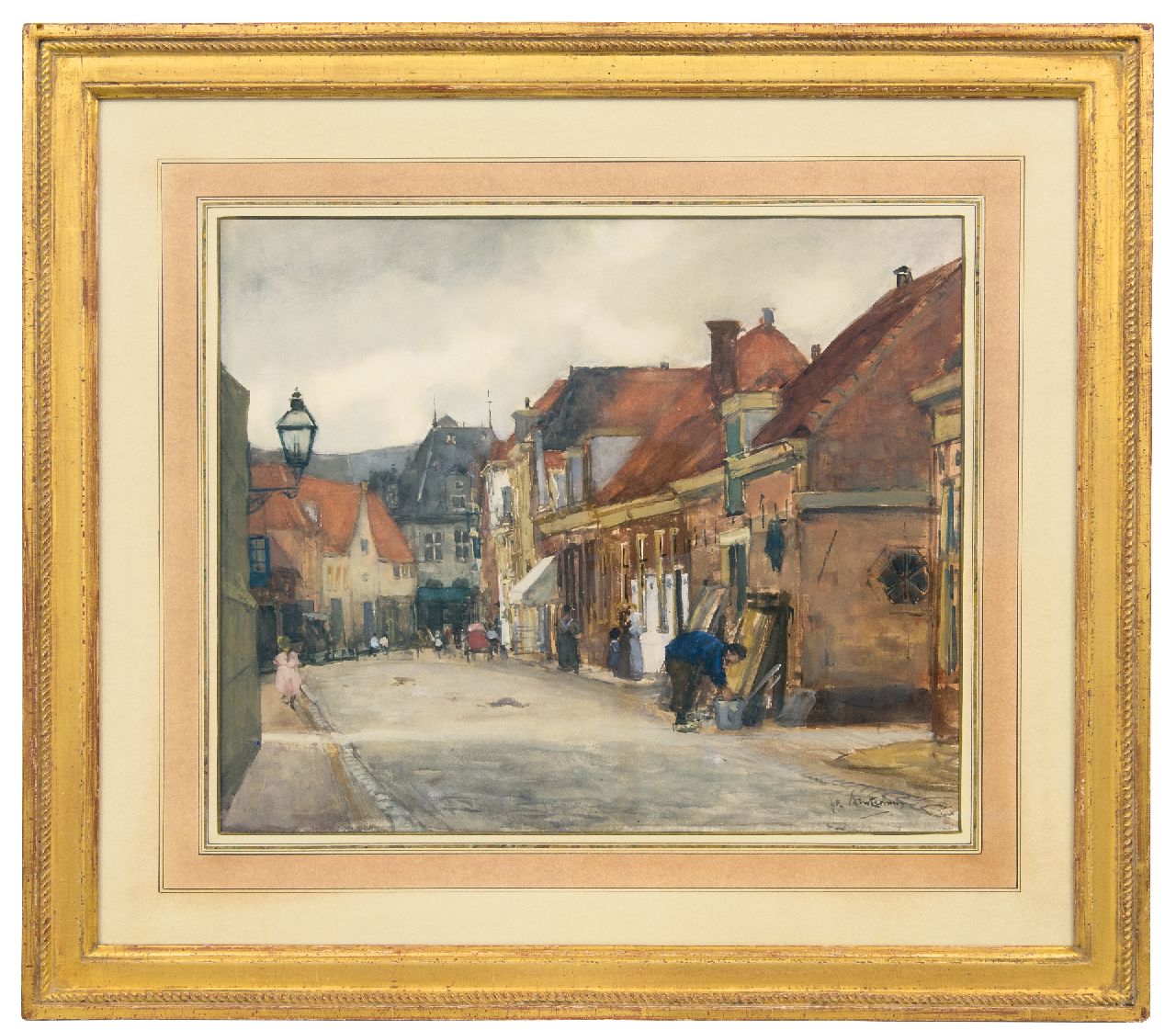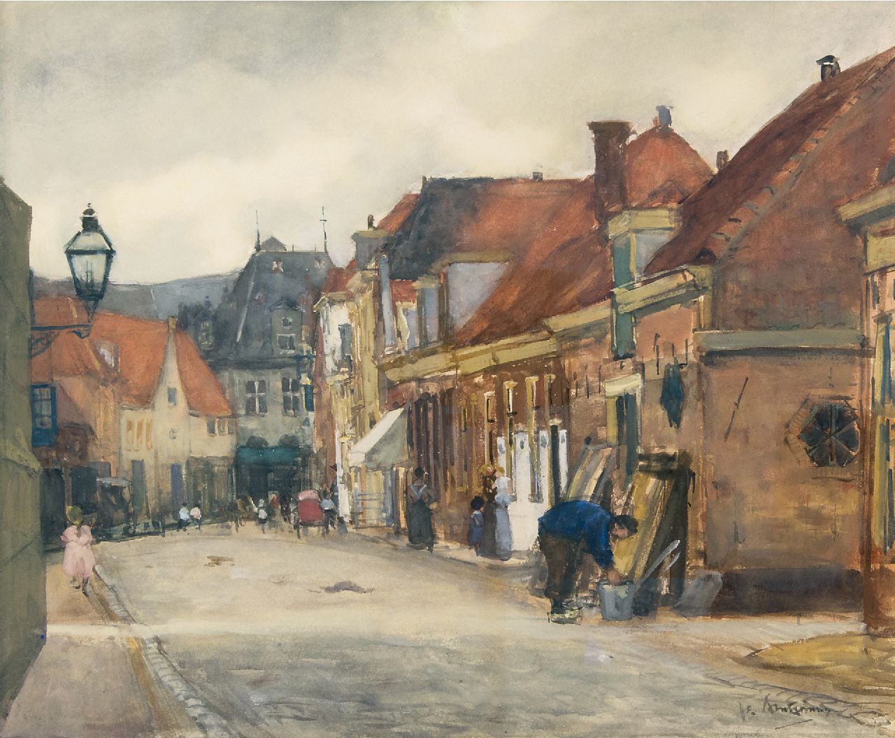 Floris Arntzenius Kunstwerk • Aquarell • Zeichnung • zuvor zu verkaufen Strasse zu Hoorn mit Anblick auf die Käsewaage