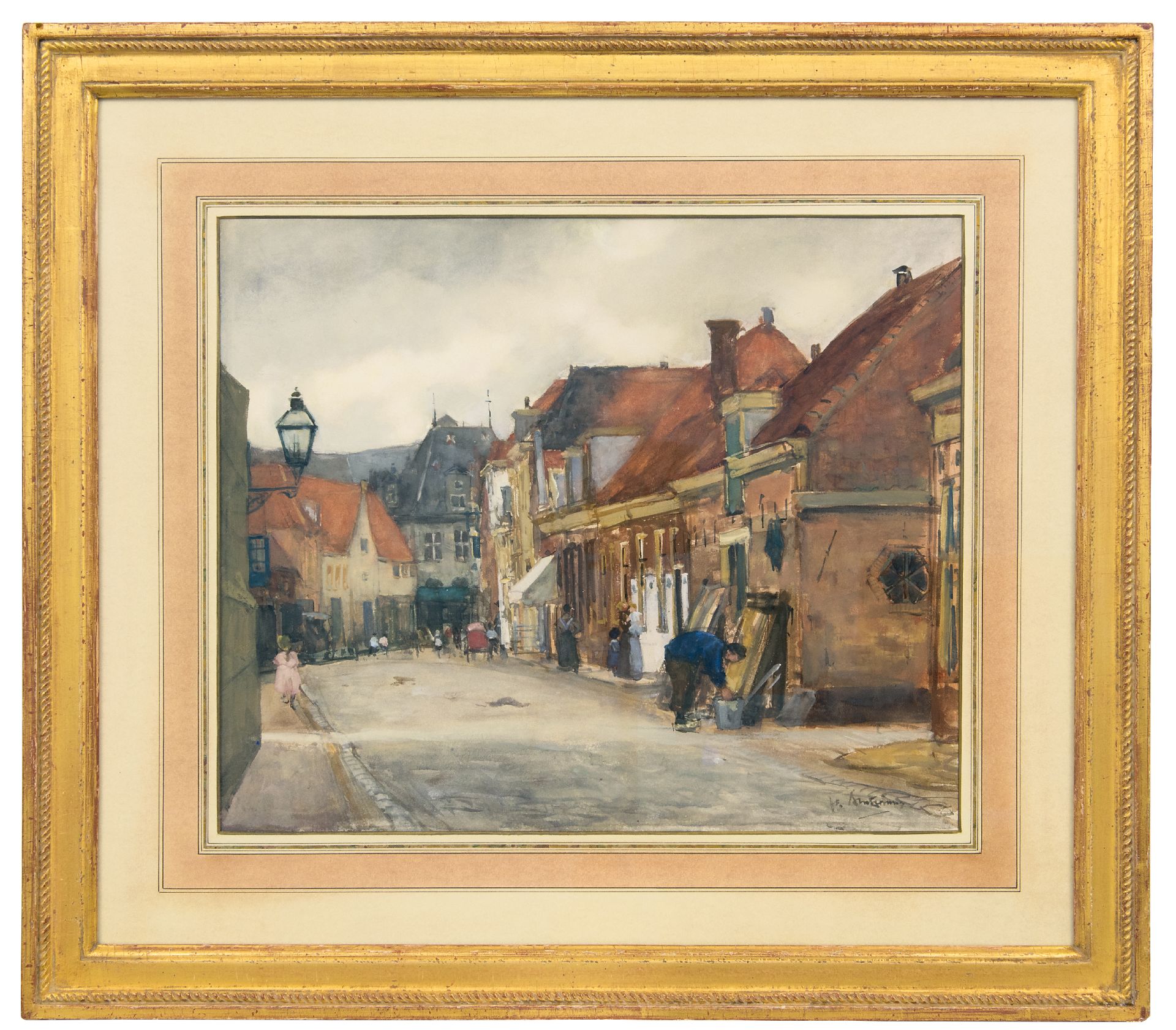 Floris Arntzenius | Haager Textilmarkt, Gouache auf Papier, 29,1 x 49,3 cm, Unterzeichnet u.l.