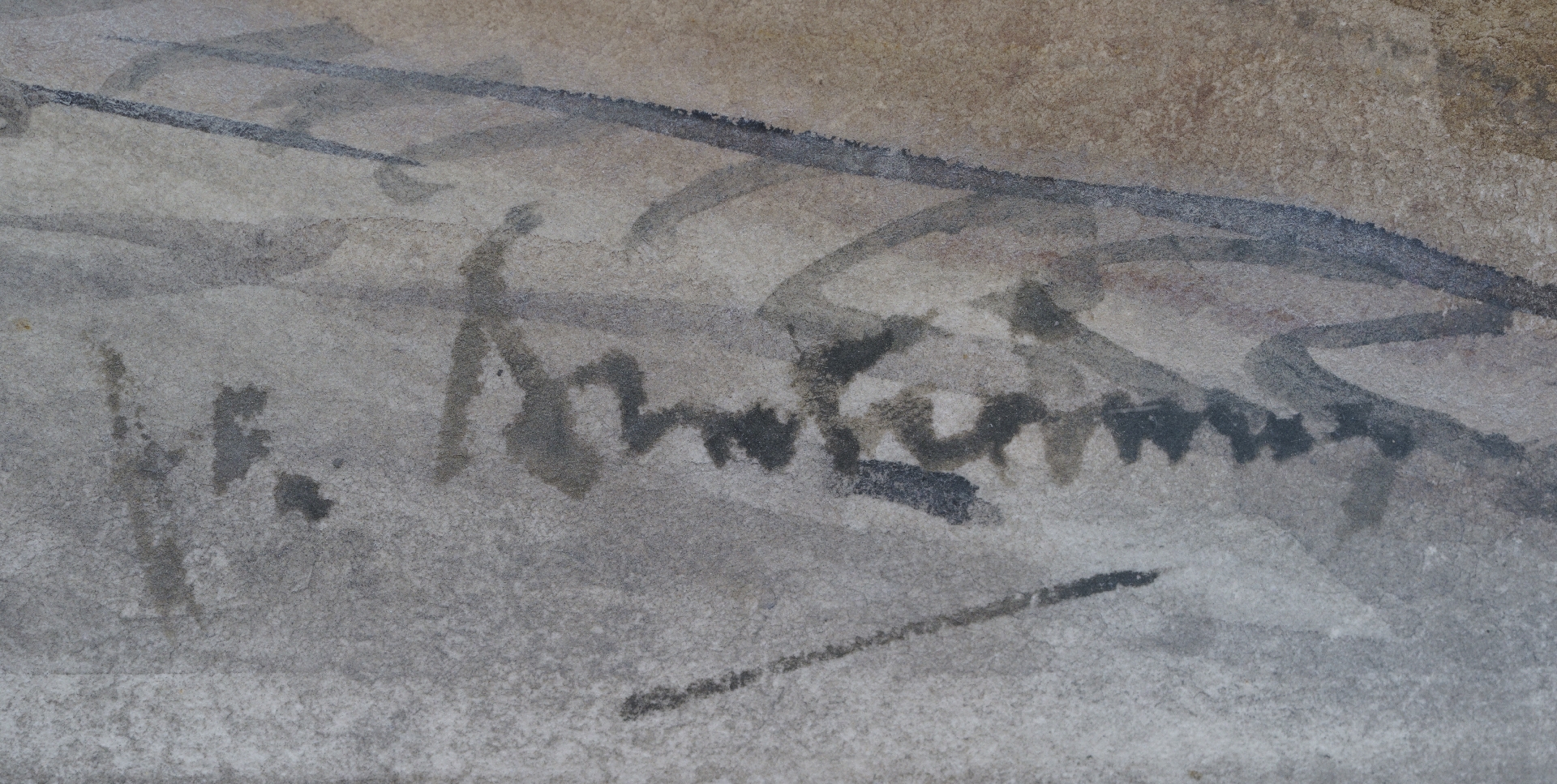 Floris Arntzenius | Landschaft bei regnerischem Wetter, Holzkohle und Aquarell auf Papier, 23,0 x 41,5 cm, Unterzeichnet u.l. Signaturreste