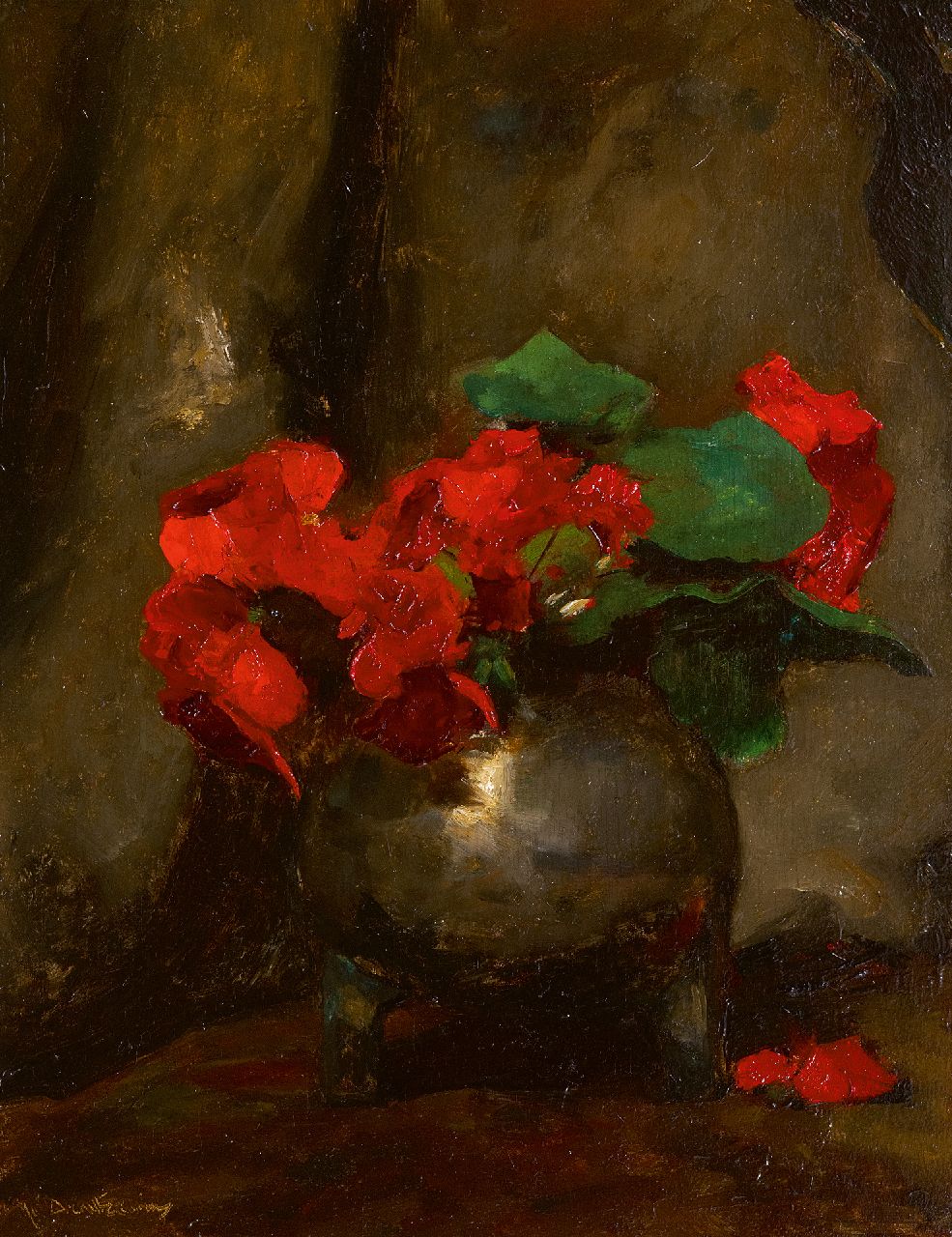 Floris Arntzenius Kunstwerk • Gemälde • zuvor zu verkaufen Rote Kapuzinerkresse in einem Metalltopf