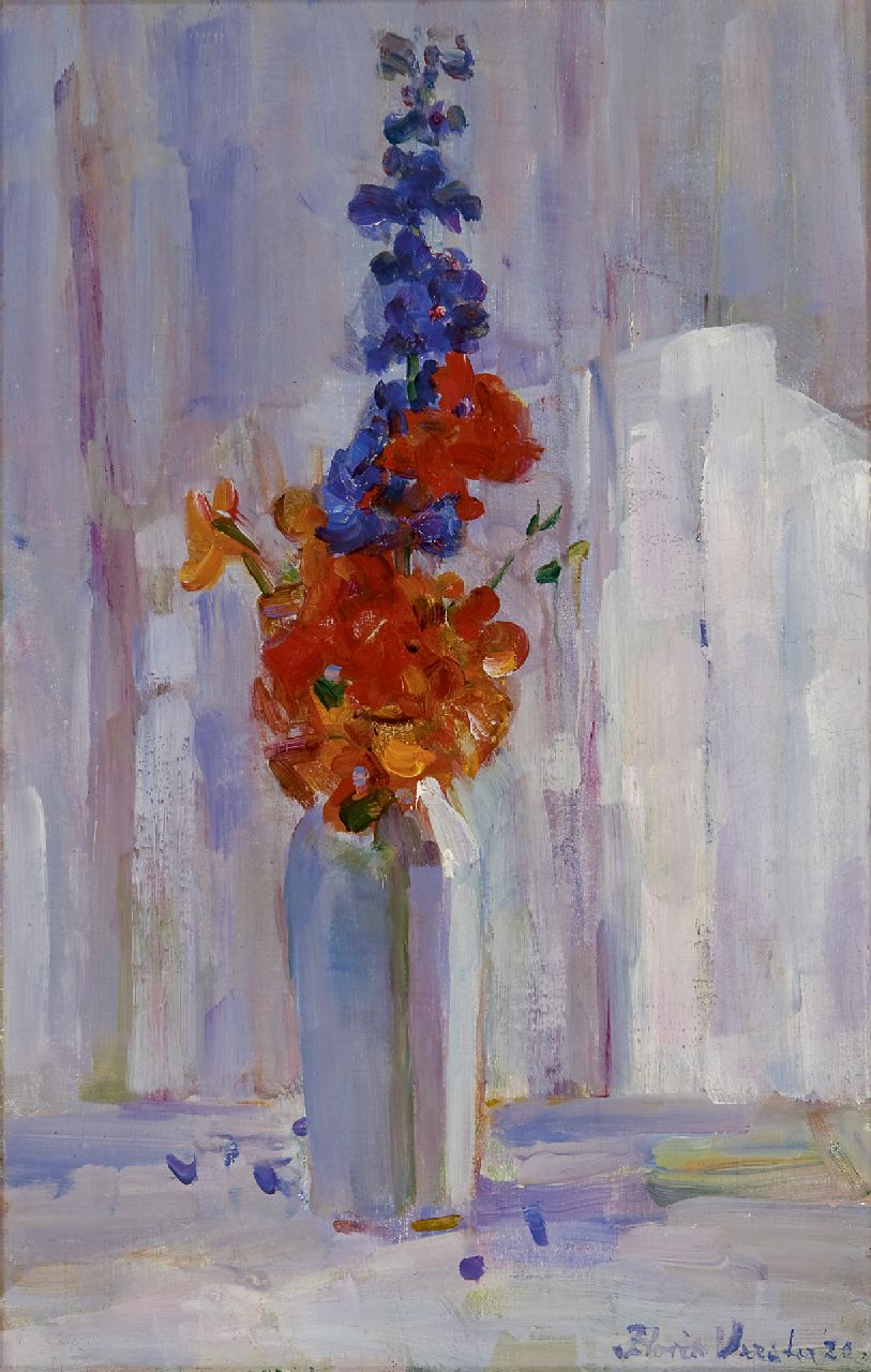 Floris Verster Kunstwerk • Gemälde • zuvor zu verkaufen Nasturtium in a white Delft vase