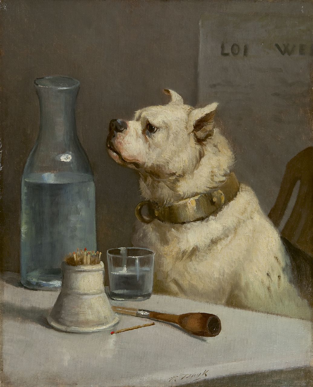 François Duyk Kunstwerk • Gemälde • zuvor zu verkaufen The thirsty dog