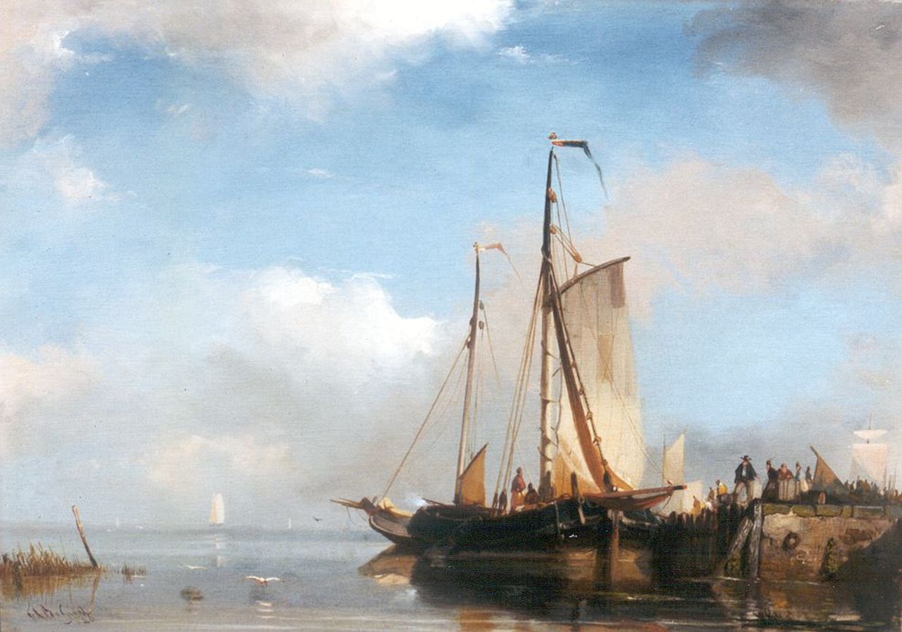 Frans Arnold Breuhaus de Groot Kunstwerk • Gemälde • zuvor zu verkaufen Moored boats, figures on a quay