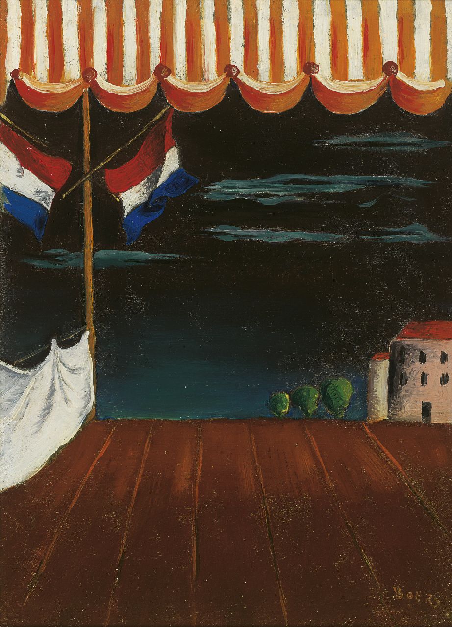Nach seiner Ausbildung an der Haager Akademie verließ Frans Boers 1924 seine Residenz nach Paris, um sein Studium an der Freien Akademie von Montparnasse fortzusetzen. Zusammen mit seinem Bruder Willy malte er in den 1930er Jahren in Paris und Südfrankreich unter dem Einfluss der 'modernen Italiener' Di Chirico und Carra. Anschließend entwickelte er einen Stil, der eine Mischung aus Surrealismus und Naturalismus darstellt. Boers malte hauptsächlich Stadtansichte, in denen er klar definierte Formen und Farbbereiche kontrastiert. In Holland wurde seine Arbeit in der Ausstellung 'Free Images' (1947) im Stedelijk Museum gezeigt.