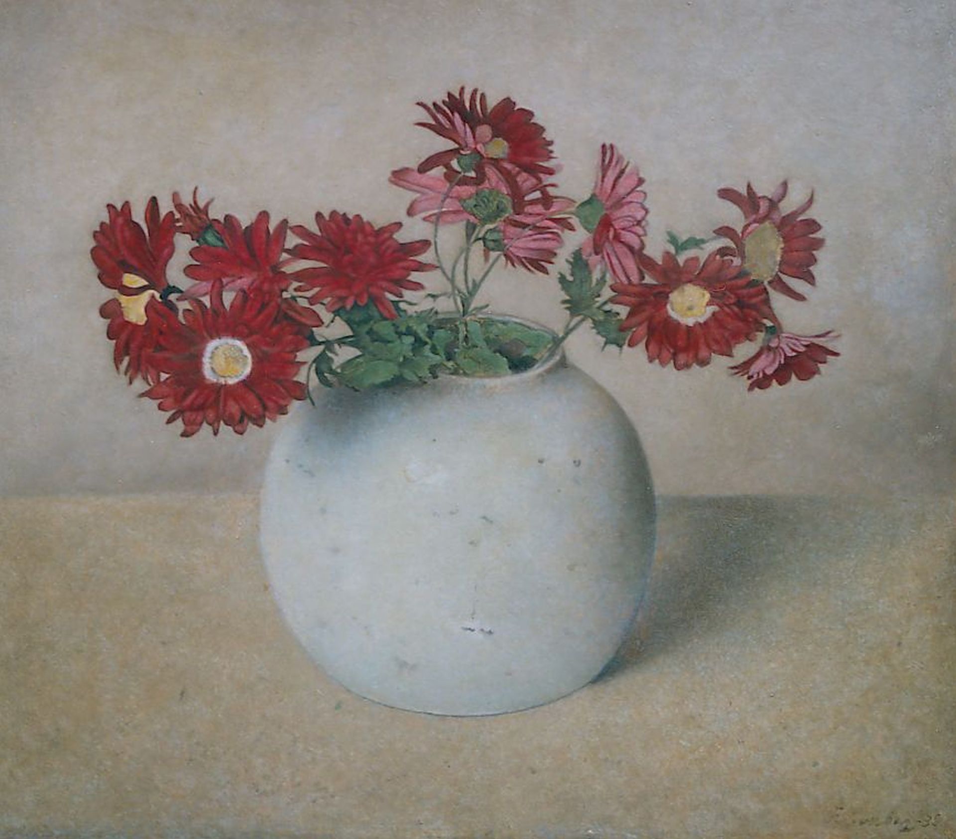 Frans Everbag Kunstwerk • Gemälde • zuvor zu verkaufen Red chrysanthemum in a white pot