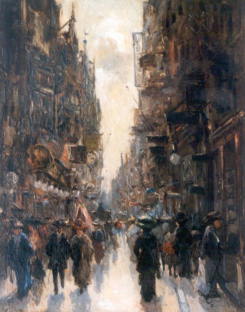 Frans Helfferrich Kunstwerk • Gemälde • zuvor zu verkaufen Figures in a street, The Hague