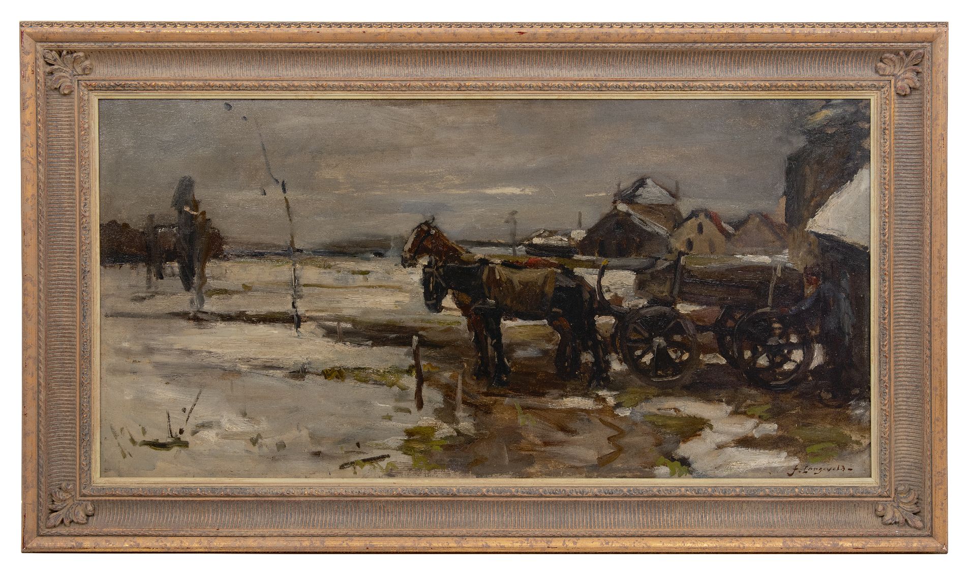 Frans Langeveld Kunstwerk • Gemälde • zu verkaufen Pferd und Wagen im Schnee