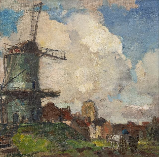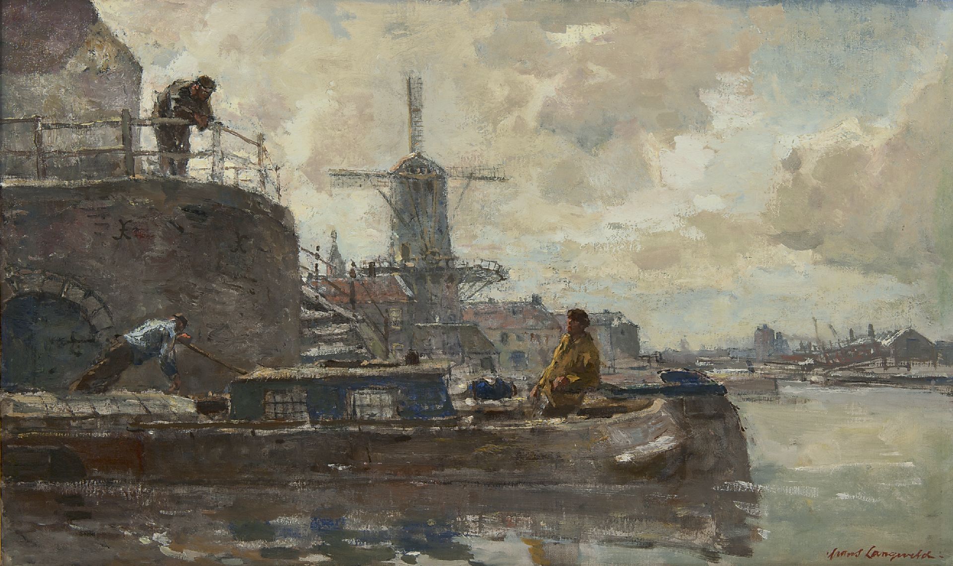 Frans Langeveld Kunstwerk • Gemälde • zu verkaufen Mühle am Wasser , Amsterdam