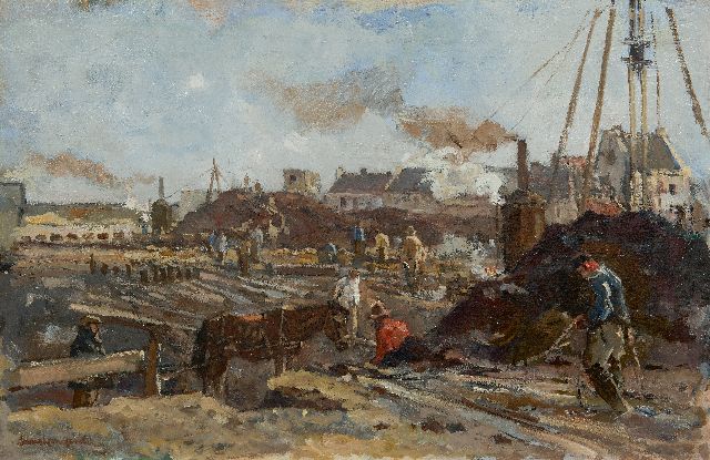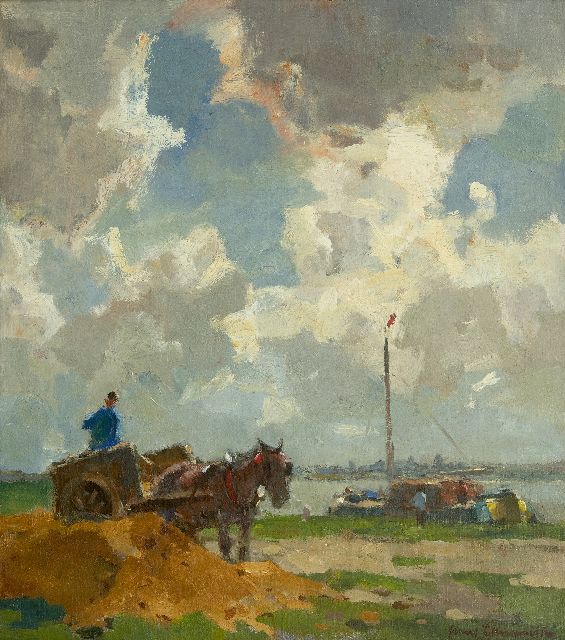 Der geborene Amsterdamer Frans Langeveld studierte Chemie bevor er sich verlegte auf die Malerei. Er nahm Unterricht an der Reichspedagogische Akademie in der Hauptstadt und war nachher Schüler von G.W.Dijsselhof. Zunächst malte er Landschaften, viele Amsterdamer Stadtansichten und Innenräume. Sein Werk ist fest, kräftig und einigermassen rau von der Struktur her. Sich abarbeitende Menschen, Aktion, Bewegung und das Epische in der Natur zogen ihn an. Ab 1903 kam er regelmässig nach Laren, wo er sich dann niederliess und wo er Bauerninnenräume mit Figuren malte. Dabei war er vielmehr Realist als seine Kollegen.