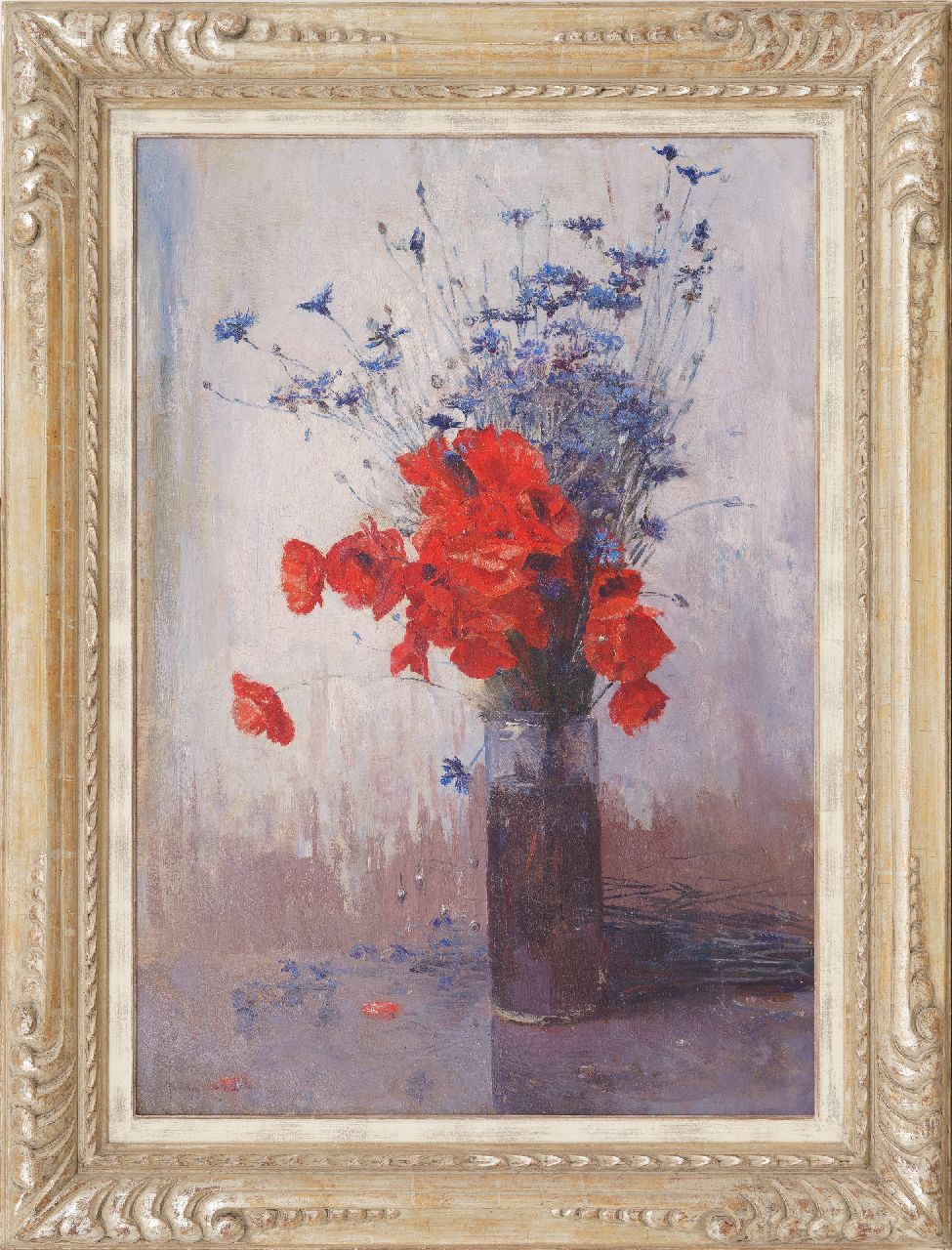 Frans Oerder Kunstwerk • Gemälde • zuvor zu verkaufen Klatschrozen und Kornblume in hoher Vase