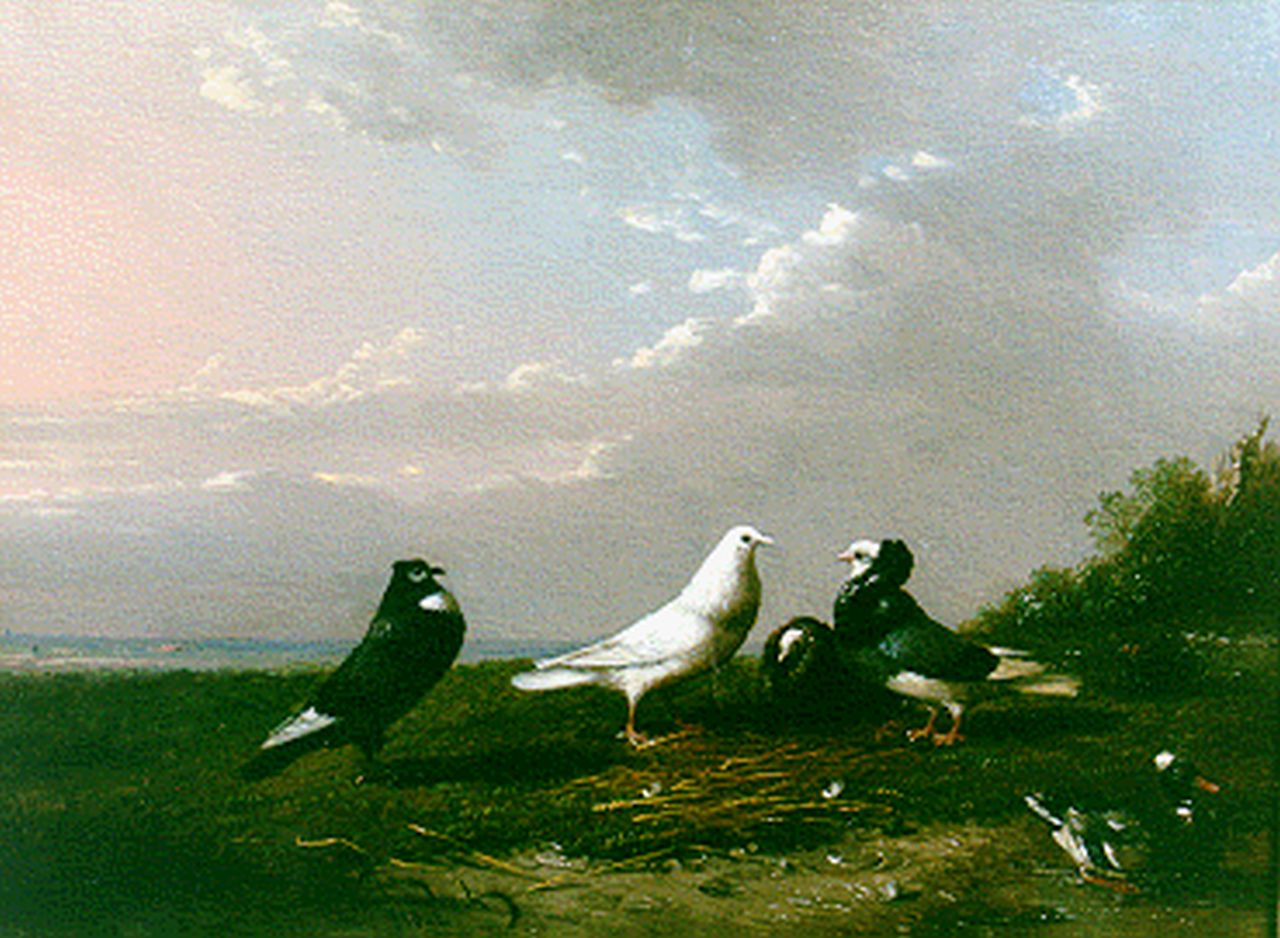 Frans van Severdonck Kunstwerk • Gemälde • zuvor zu verkaufen A landscape with pigeons and a duck