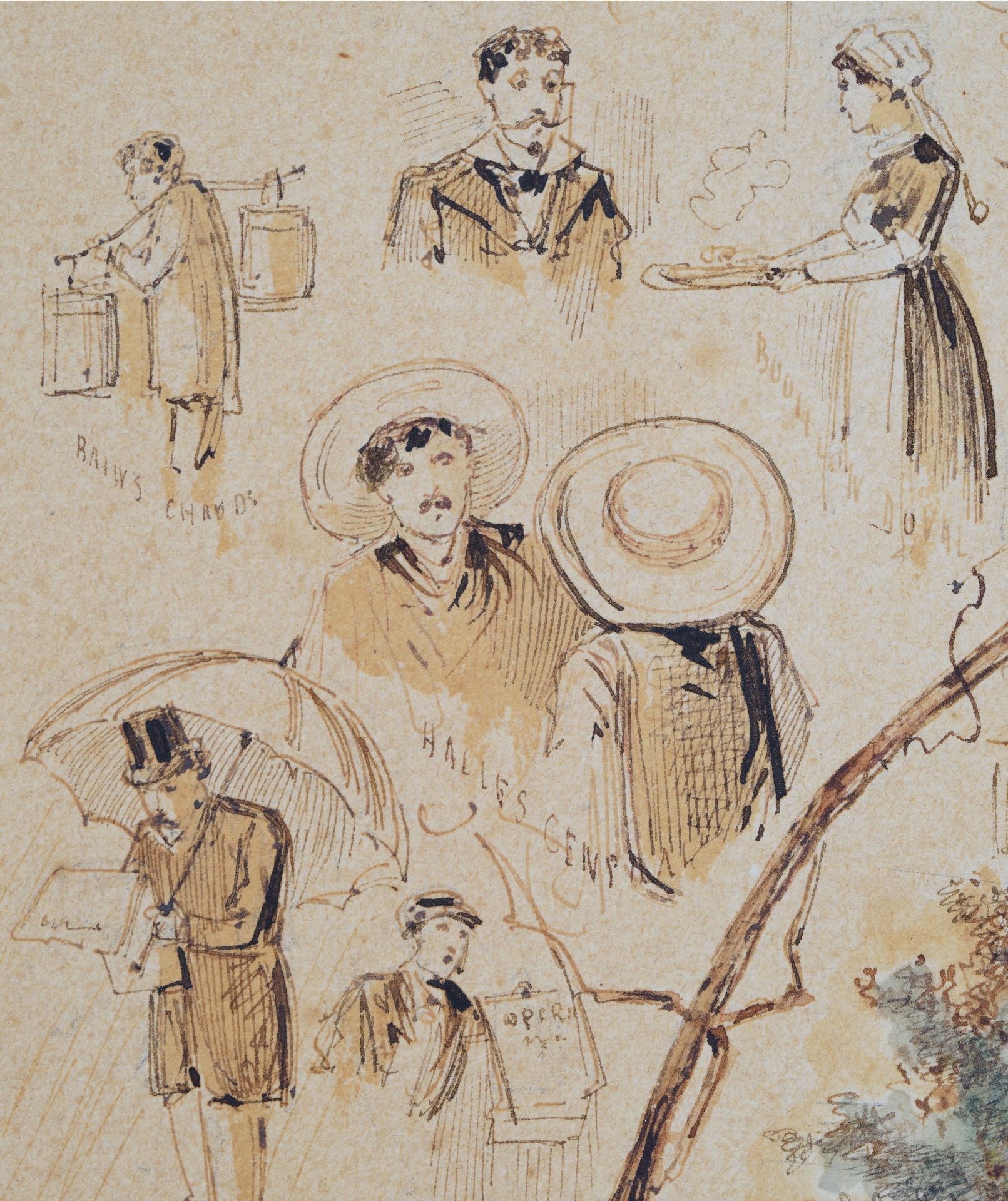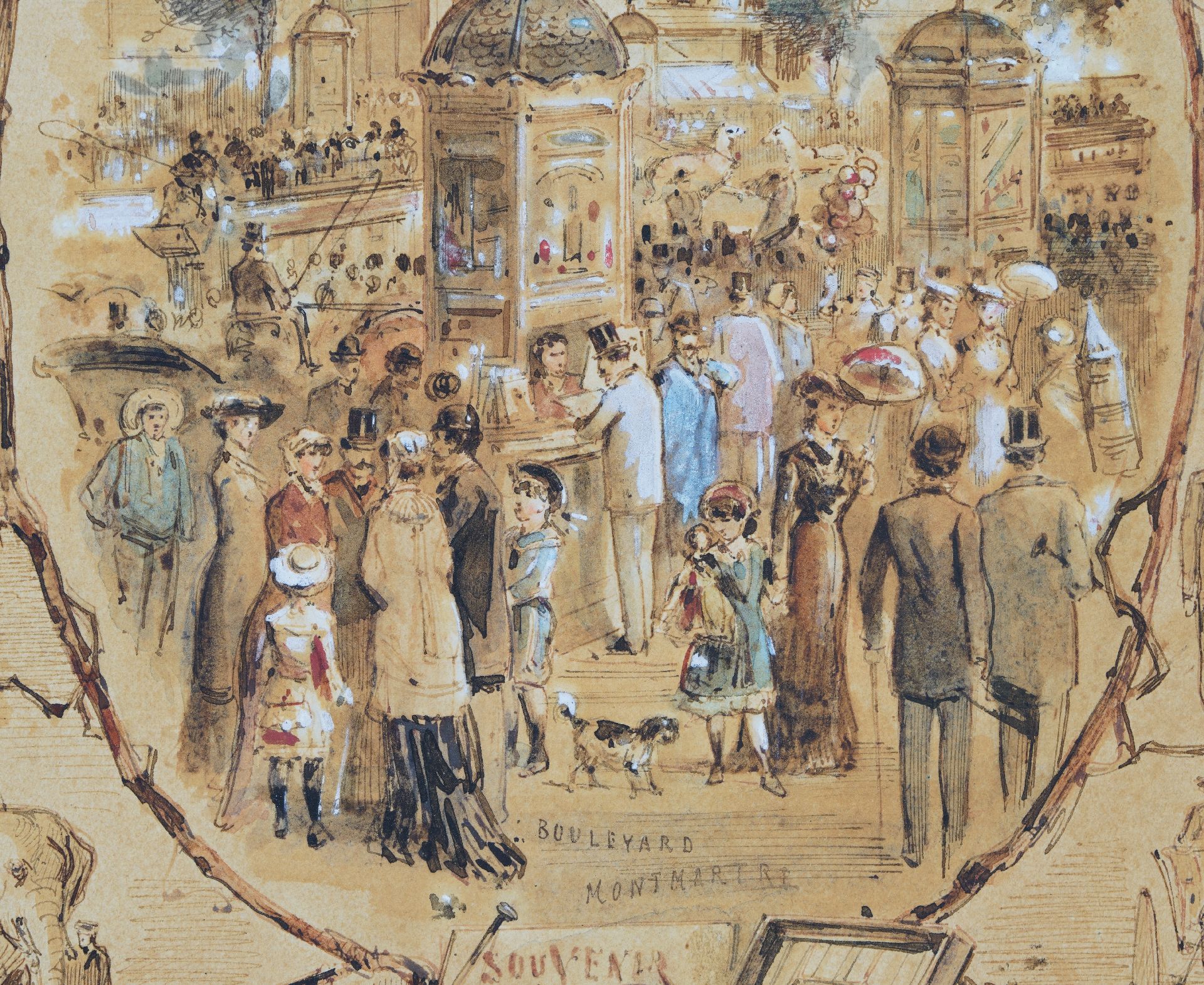 Franse School Kunstwerk • Aquarell • Zeichnung • zu verkaufen Souvenirs de Paris