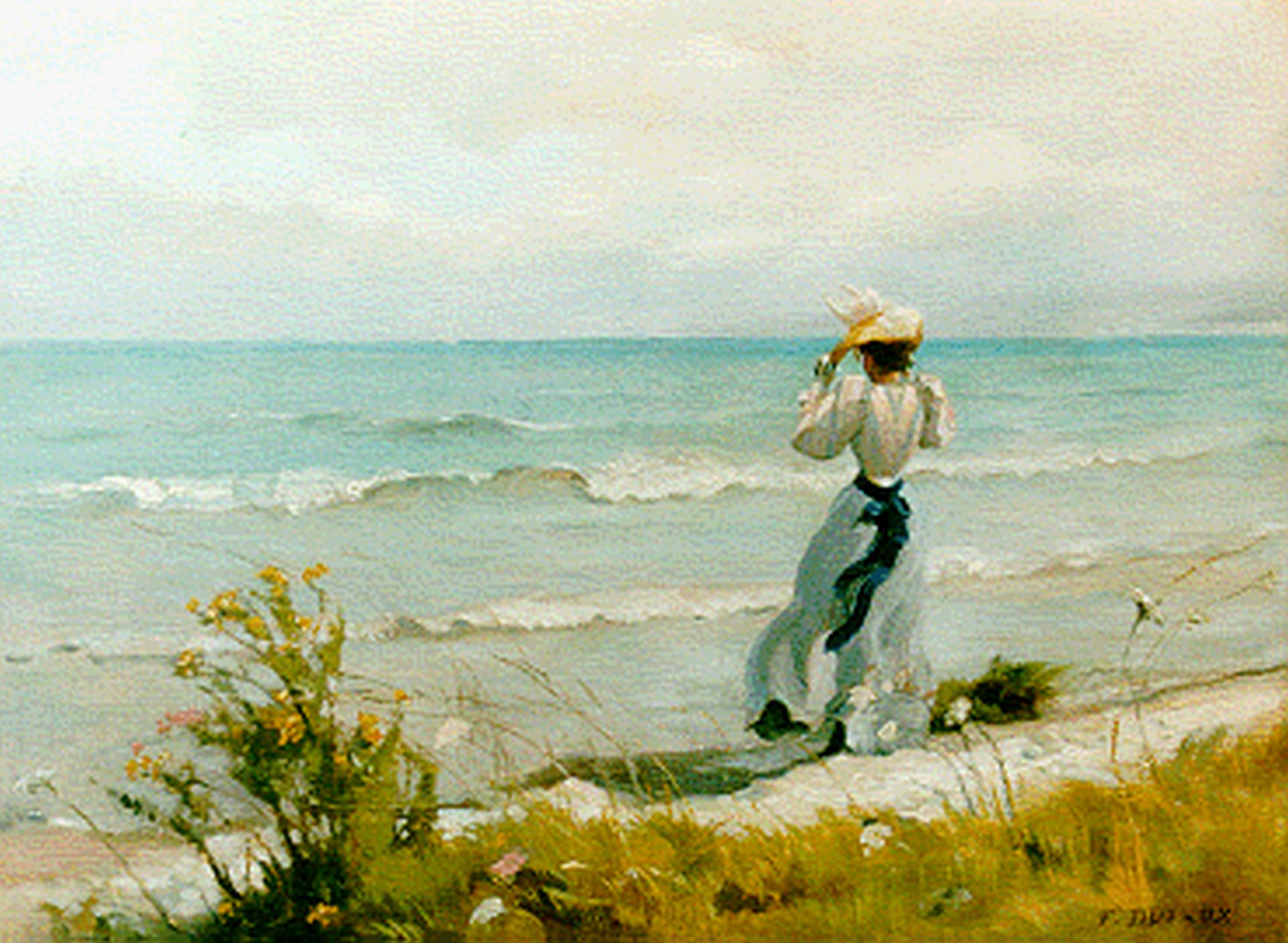 Frédéric Dufaux II Kunstwerk • Gemälde • zuvor zu verkaufen An elegant lady in the dunes