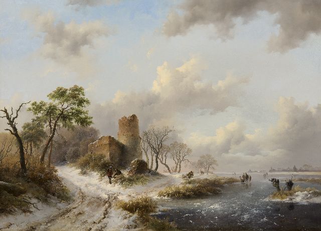 Von B.C. Koekkoek lernte Kruseman wie eine romantische Landschaft nach den Regeln seines Lehrmeisters zusammenzustellen. Er zog 1837, nachdem er bei N.J.Roosenboom und Jan van Ravenswaaij ausgebildet worden war, nach Kleve um seine Malerei bei B.C.Koekkoek zu perfektionieren. Eine zugefrorenen Fahrt mit Schlittschuhläufern, Spaziergänger auf einem Weg am Ufer, ein malerisches Schlösschen und grillenhafte kahle Bäume finden sich oft in seinen Panoramen vor. Er malte auch träumerische Sommerlandschaften mit fein ausgearbeiteten Baumgruppen und mit Vieh und einigen einfachen Jägern und Bauern geschmückt.