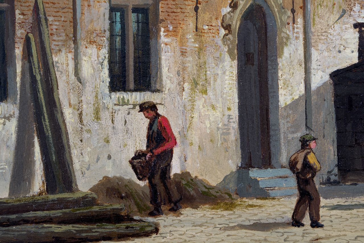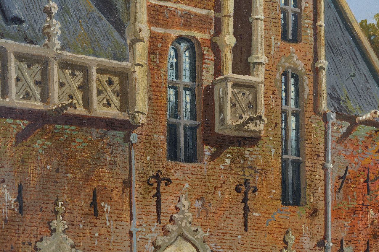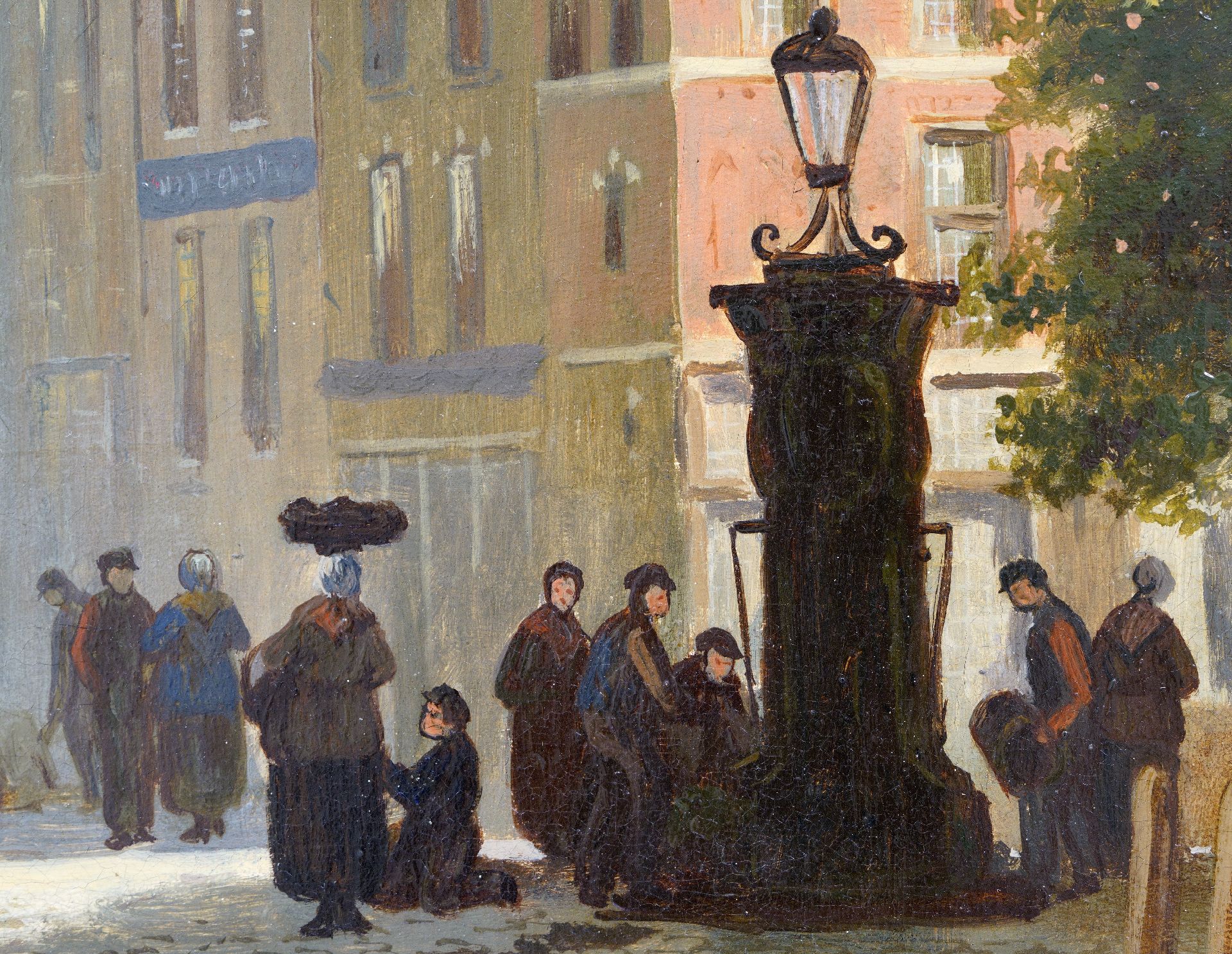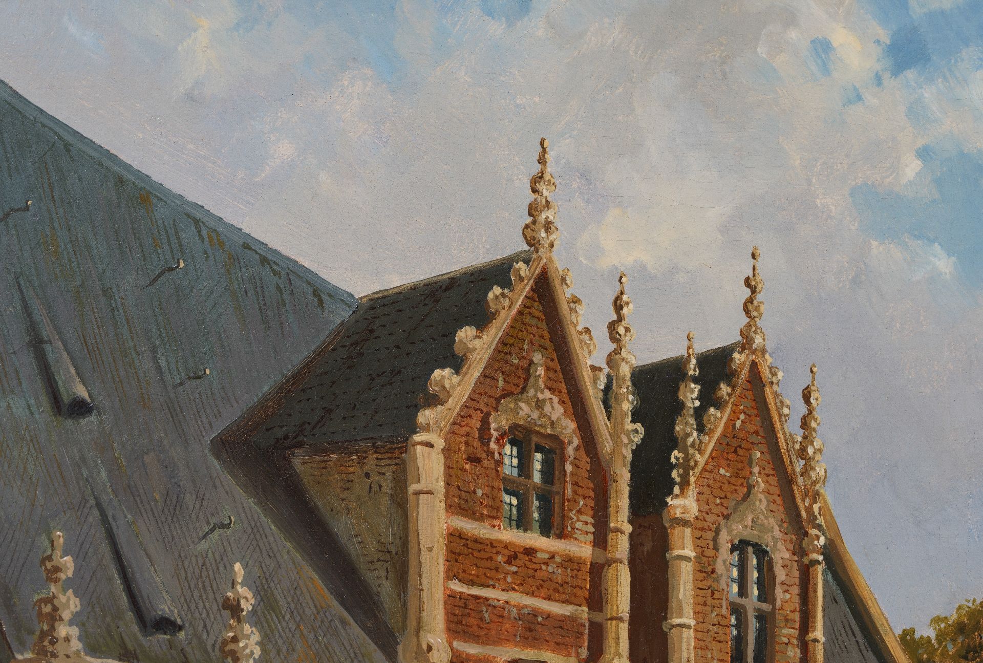 Von Frederik Roosdorp wissen wir nicht viel mehr als daß er 1839 in Amsterdam geboren ist und sich auf die Malerei von sonnigen, lebhaft geschmuckten Stadtansichten spezialisiert hat. Sein Lehrmeister ist unbekannt, seine Werke aber zeigen alle spezifischen Merkmale der holländischen Stadtansichten wie man sie zwischen 1830 und 1850 gestaltete: eine genaue Ausarbeitung, Kontrast zwischen Licht und Schatten und eine Vorliebe für alte, holländische Architektur. Einer der großen Meister in diesem Genre war Cornelis Springer. Genau wie Springer malte auch Roosdorp sowohl Stadtphantasien wie topographisch genaue Stadtporträte. Der Maler Roosdorp starb im frühen Alter und hinterließ ein kleines Gesamtwerk.