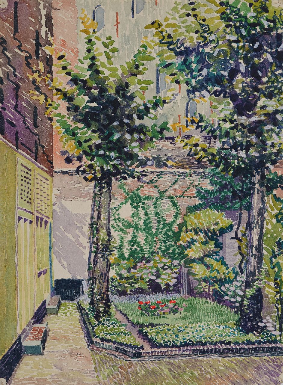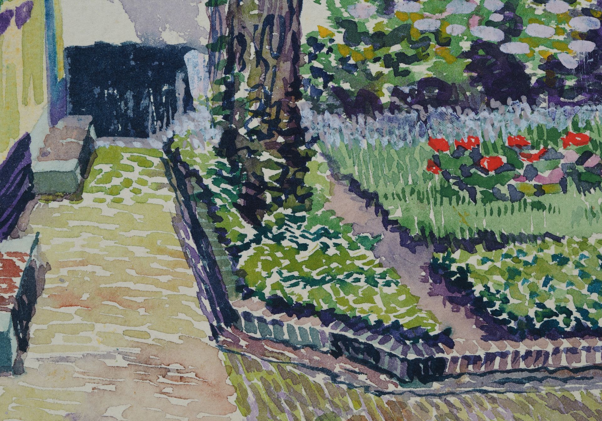 Frieda Hunziker Kunstwerk • Aquarell • Zeichnung • zuvor zu verkaufen Sonniger Hof