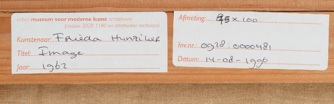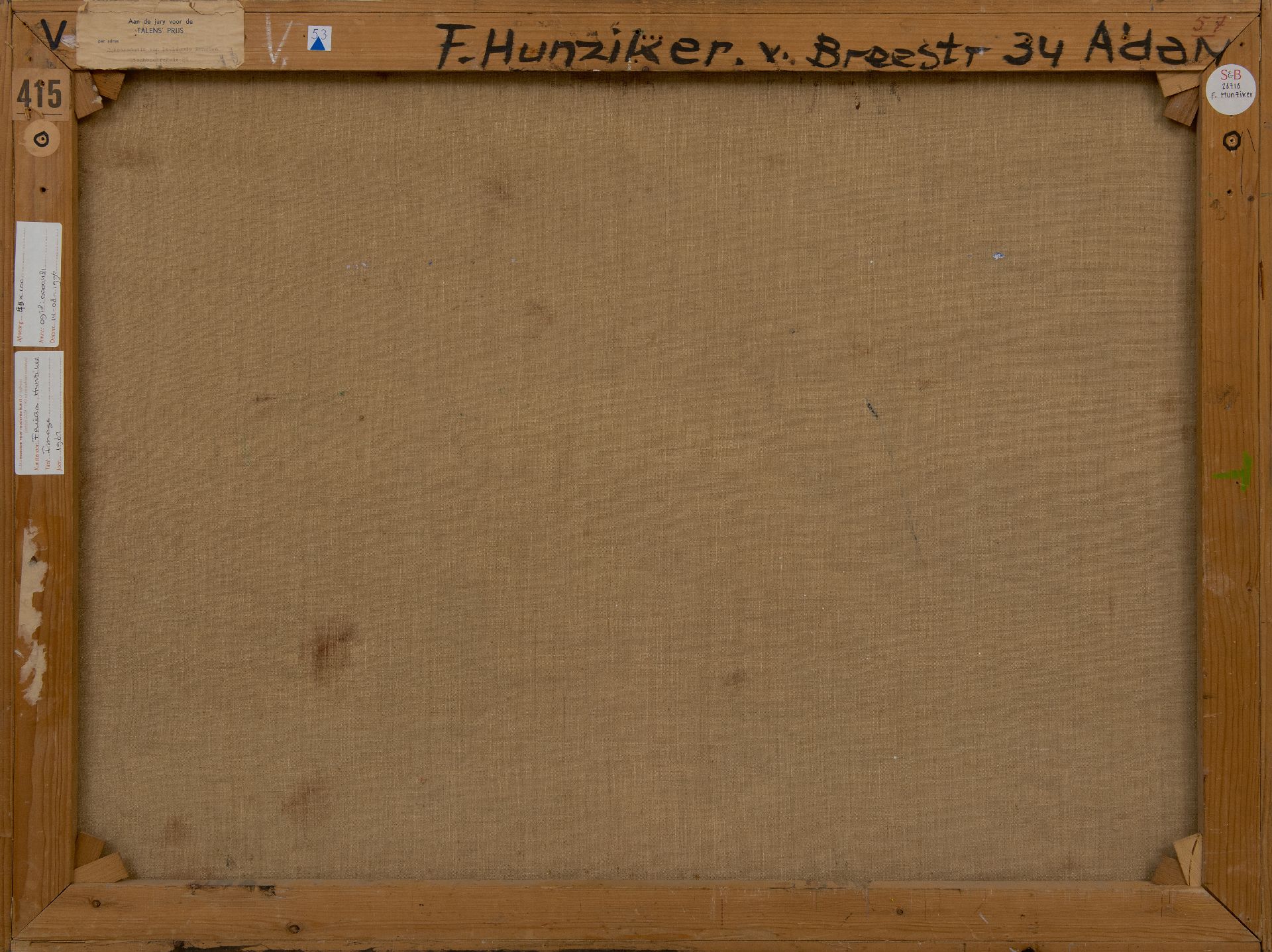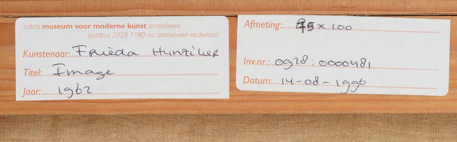 Frieda Hunziker galt in den 1950er und 1960er Jahren als bemerkenswerte und fortschrittliche Künstlerin. Zunächst war sie Zeichenlehrerin, bis sie in den 1930er Jahren begann, selbständig zu arbeiten. Ihr Frühwerk zeichnet sich durch einen vereinfachten, realistischen Stil aus. 1948 gelangte sie zur vollständigen Abstraktion. Im Jahr zuvor war sie eine der Gründer von Vrij Beelden. Diese Künstlergruppe stellte regelmäßig im Stedelijk Museum in Amsterdam aus und nahm neben den Experimentals und Cobra in der Suche nach Nicht-Figuralität einen vollwertigen Platz ein. Hunziker war die einzige Frau in der Gruppe und zugleich eines der aktivsten Mitglieder.