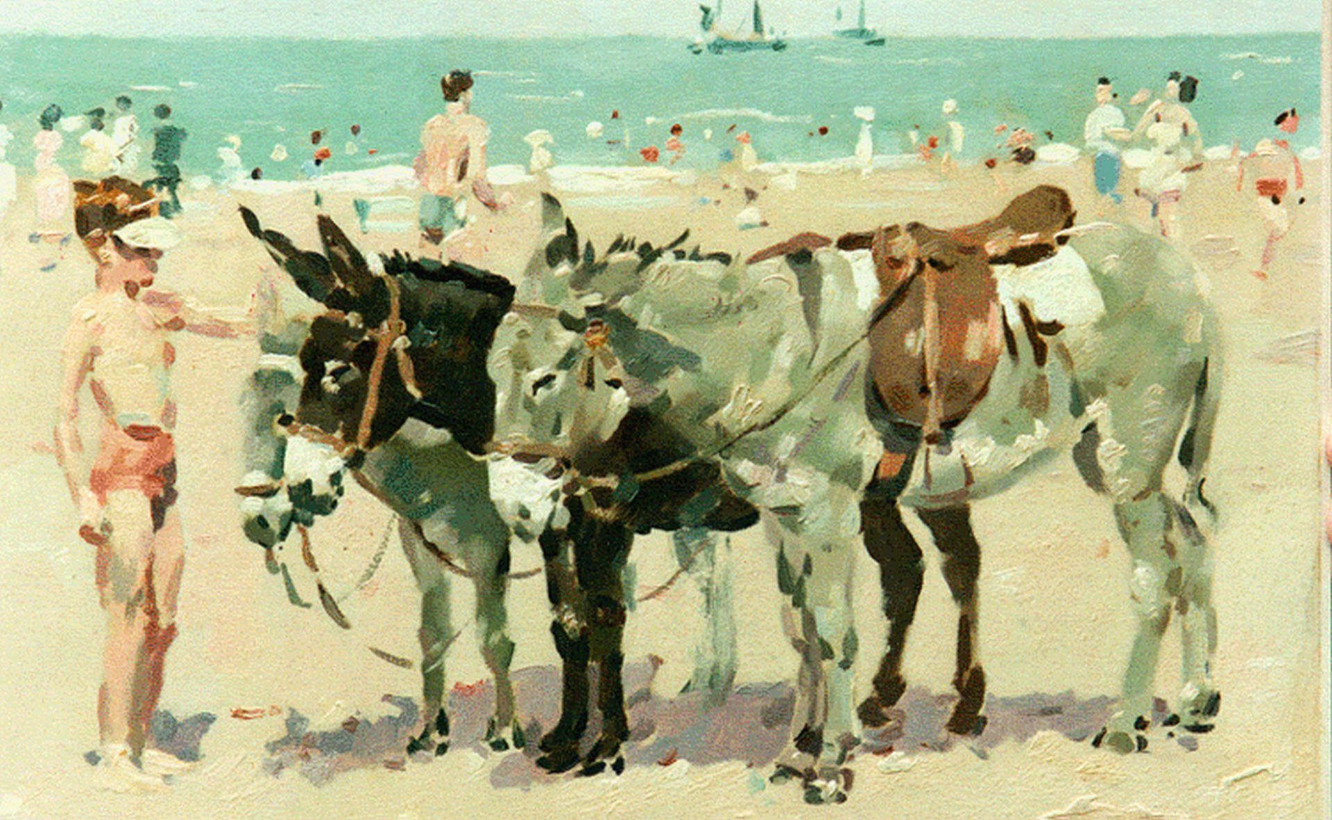 Frits Verdonk Kunstwerk • Gemälde • zuvor zu verkaufen Donkies on the beach