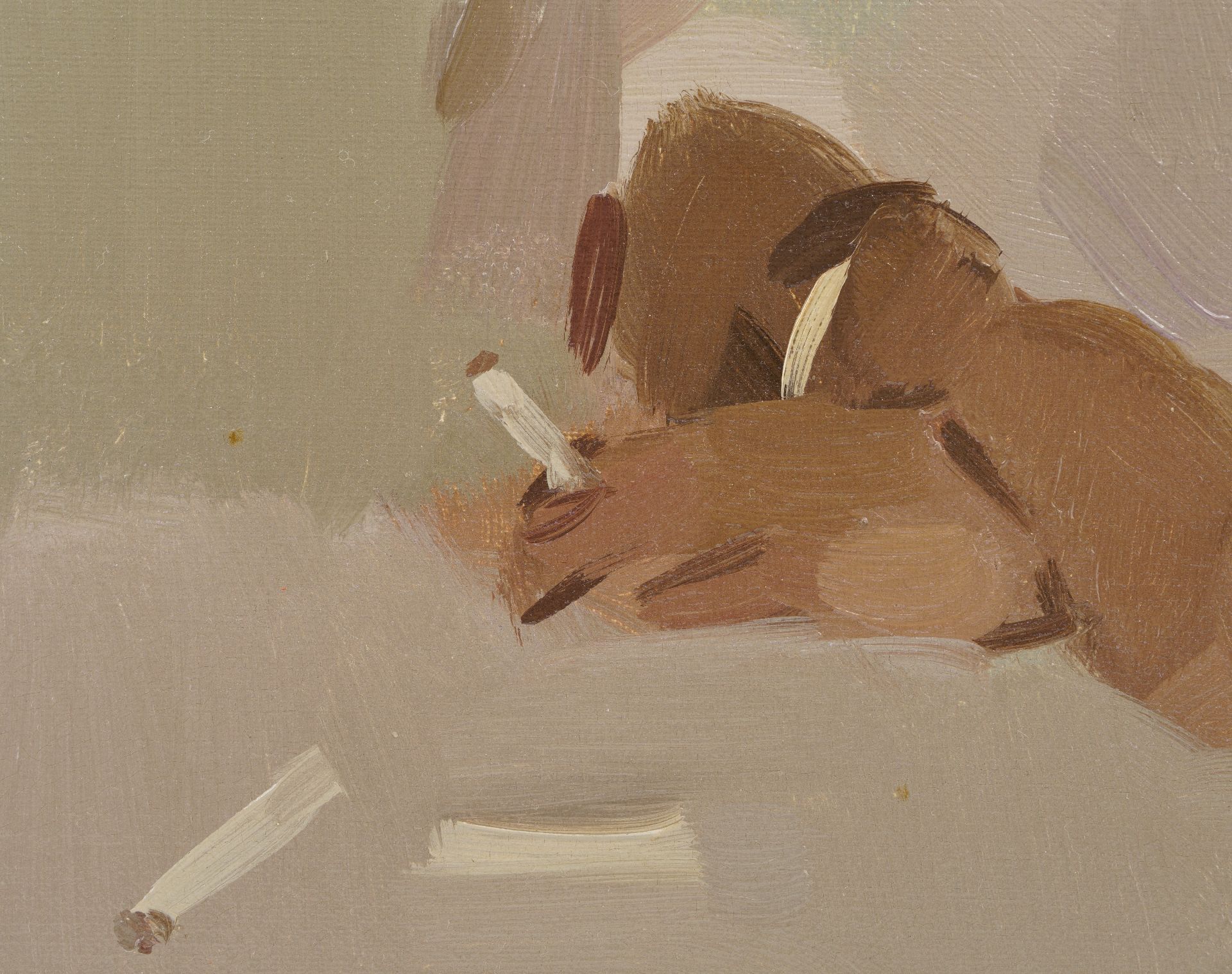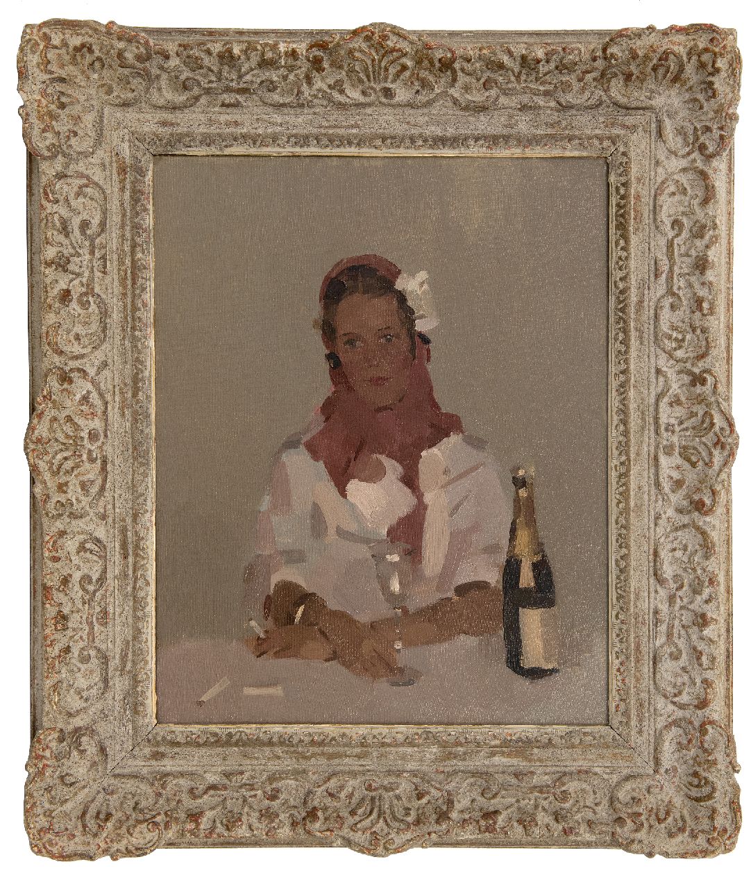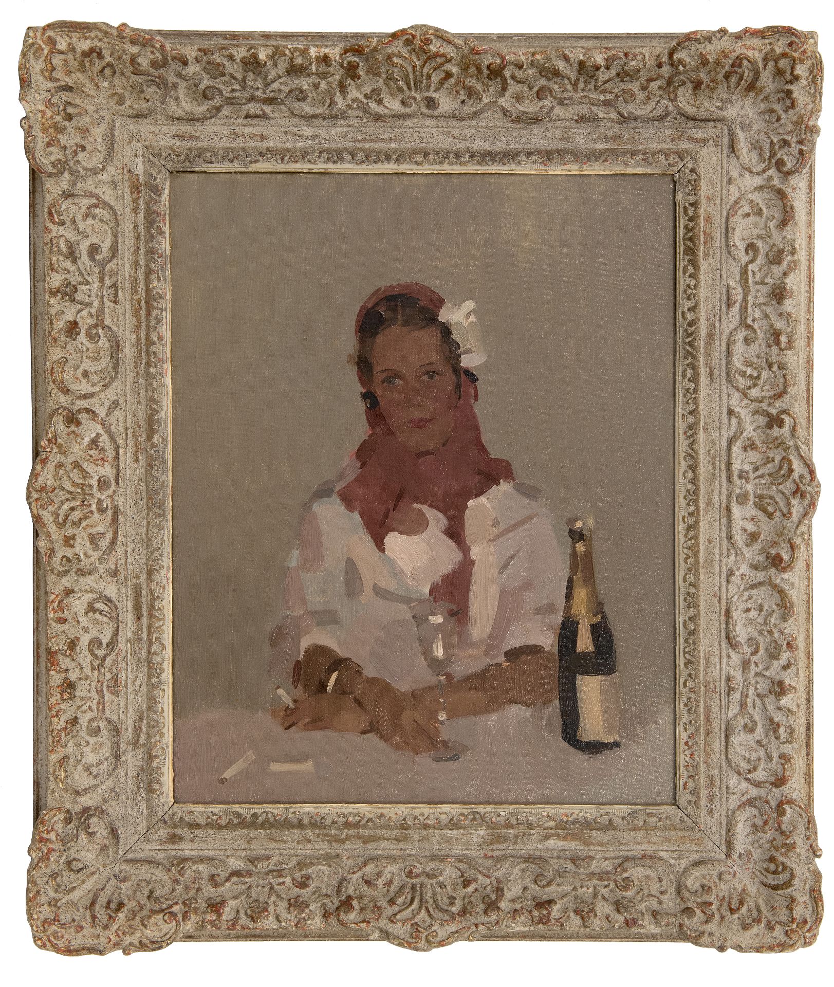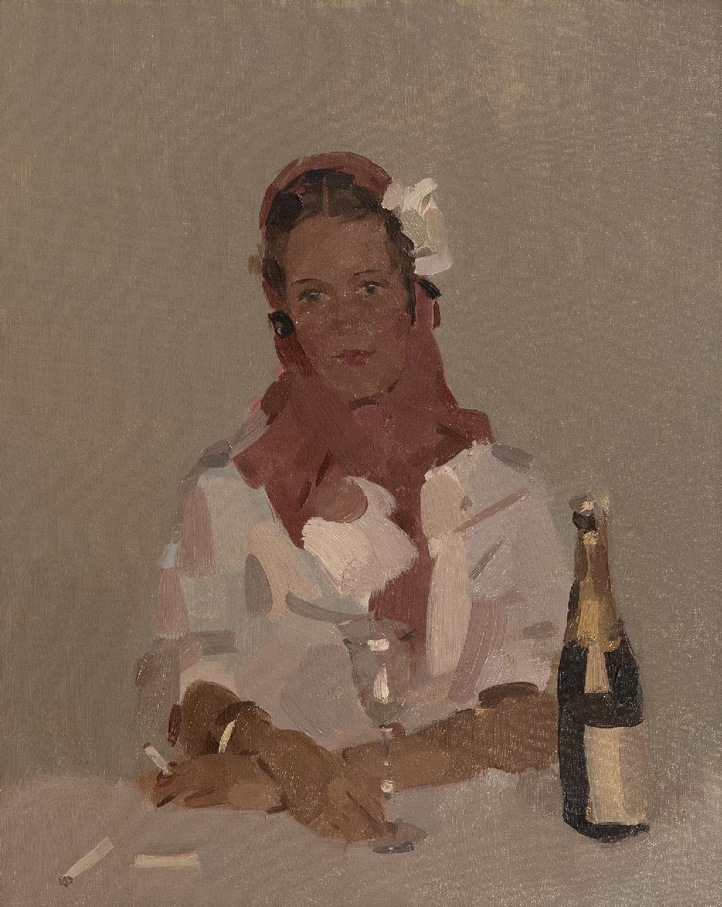 Frits Verdonk Kunstwerk • Gemälde • zu verkaufen Frau mit Zigarette und Champagnerflasche
