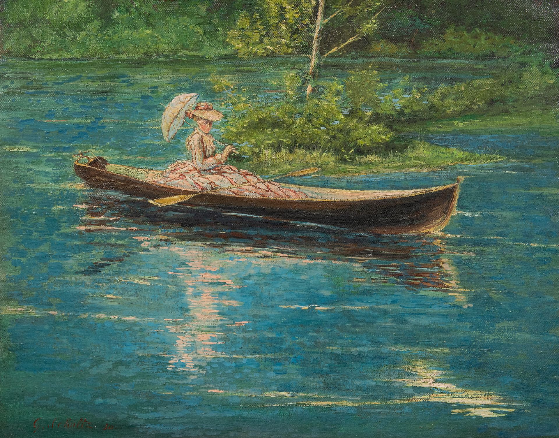 G.F. Schultz Kunstwerk • Gemälde • zu verkaufen Sommerliche Fahrt auf dem See