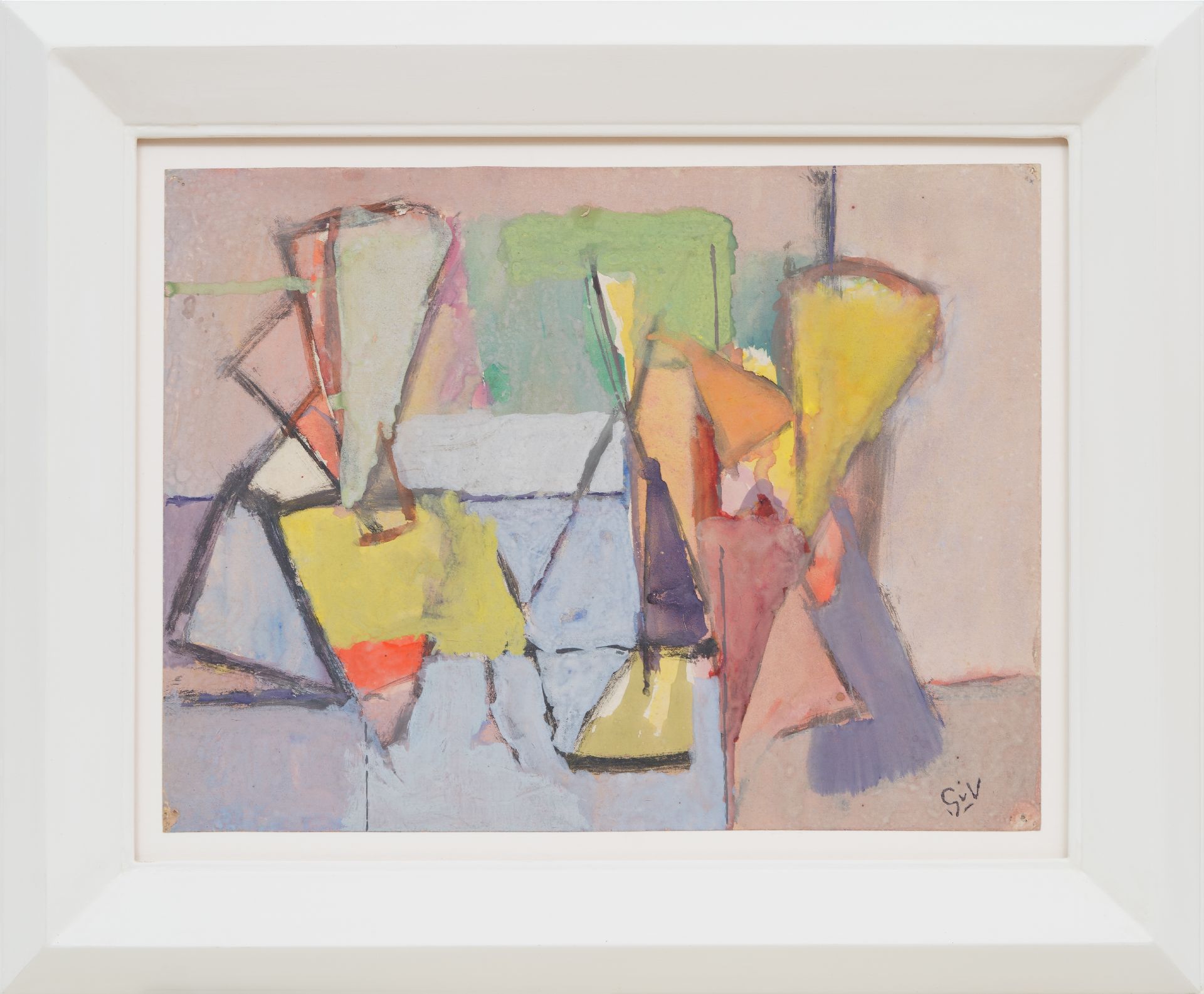 Geer van Velde ist einer der führenden Maler der Nachkriegs-École de Paris. Ursprünglich ein Anstreicher, schloss er sich 1925 seinem Bruder Bram in Paris an, um sich dort weiterzuentwickeln. Anfangs war seine Arbeit figurativer Expressionist. Insbesondere nach seinem Umzug nach Südfrankreich im Jahr 1938 fand er unter dem Einfluss des mediterranen Lichts seinen eigenen Stil; Die Realität vereinfachte sich auf vertikale, horizontale und diagonale Linien und Bereiche, die mit Farbe ausgefüllt sind. Dabei spielt die Reproduktion eines dünnen, gefilterten Lichts eine große Rolle. Figuren und Objekte sind in seiner Arbeit bis 1940 noch zu erkennen.