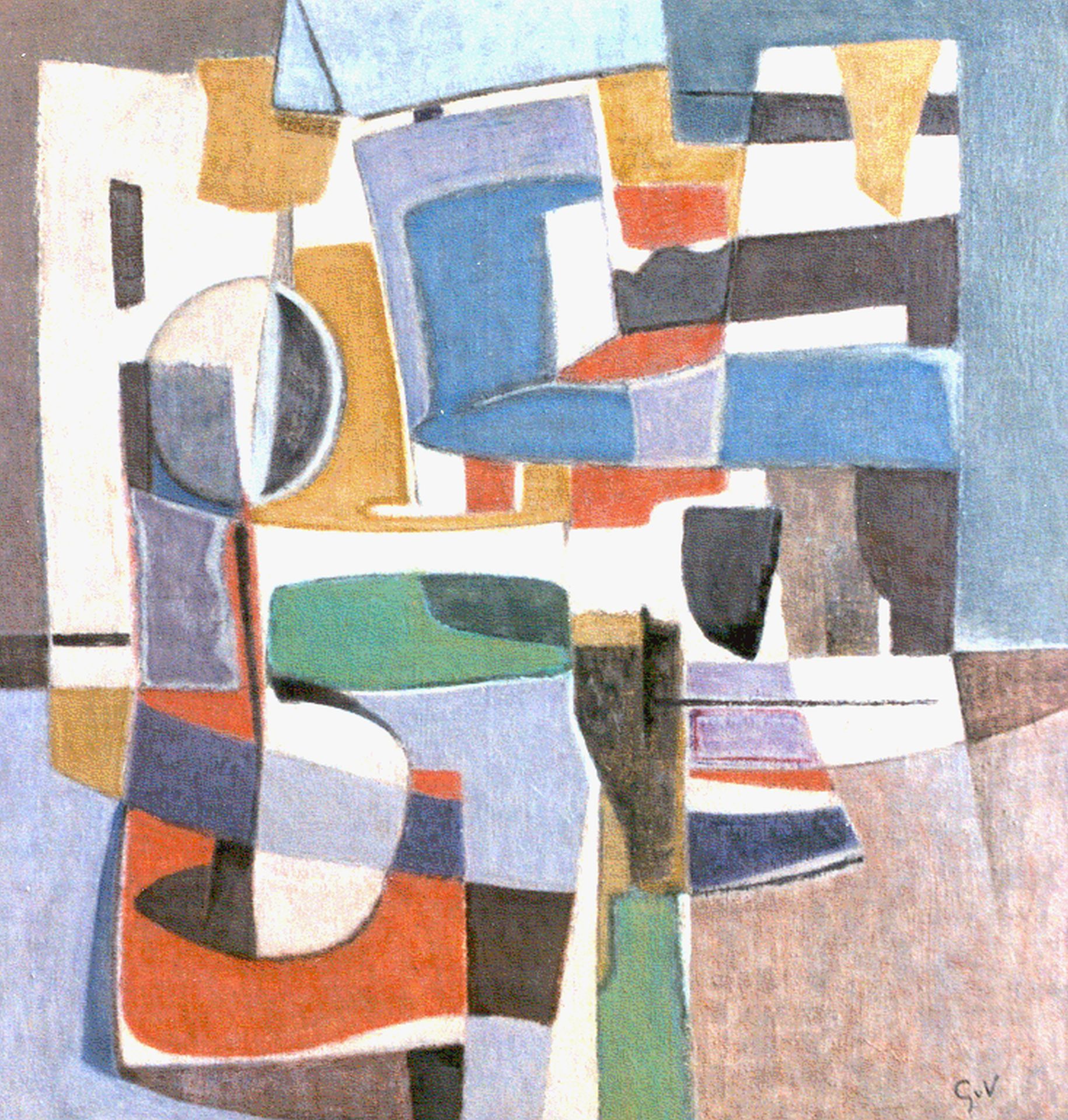 Geer van Velde ist einer der führenden Maler der Nachkriegs-École de Paris. Ursprünglich ein Anstreicher, schloss er sich 1925 seinem Bruder Bram in Paris an, um sich dort weiterzuentwickeln. Anfangs war seine Arbeit figurativer Expressionist. Insbesondere nach seinem Umzug nach Südfrankreich im Jahr 1938 fand er unter dem Einfluss des mediterranen Lichts seinen eigenen Stil; Die Realität vereinfachte sich auf vertikale, horizontale und diagonale Linien und Bereiche, die mit Farbe ausgefüllt sind. Dabei spielt die Reproduktion eines dünnen, gefilterten Lichts eine große Rolle. Figuren und Objekte sind in seiner Arbeit bis 1940 noch zu erkennen.