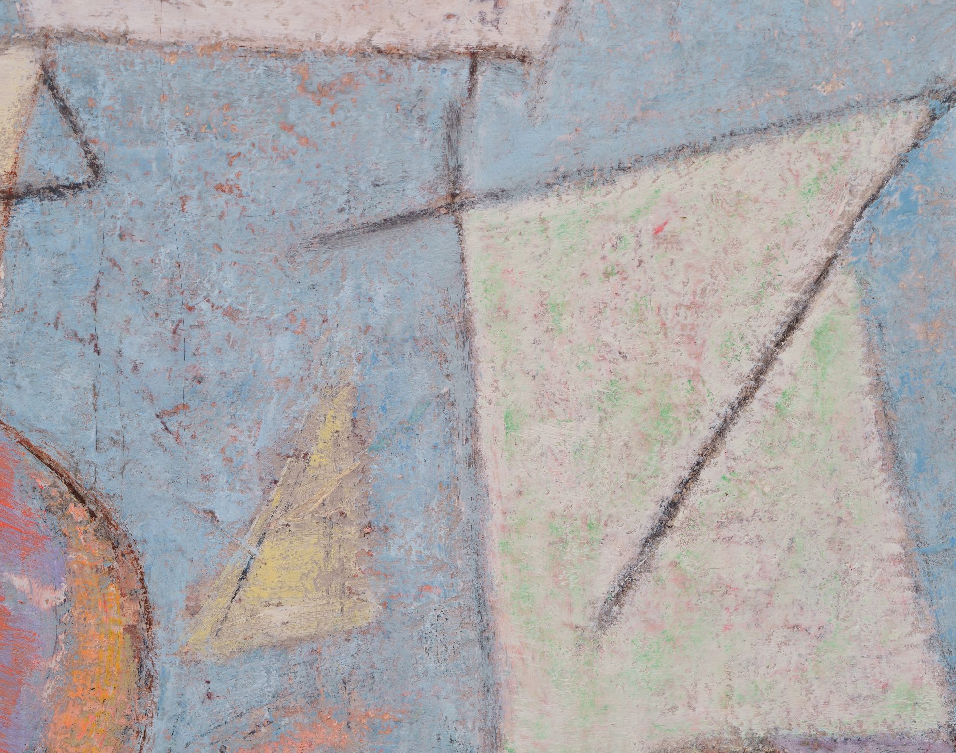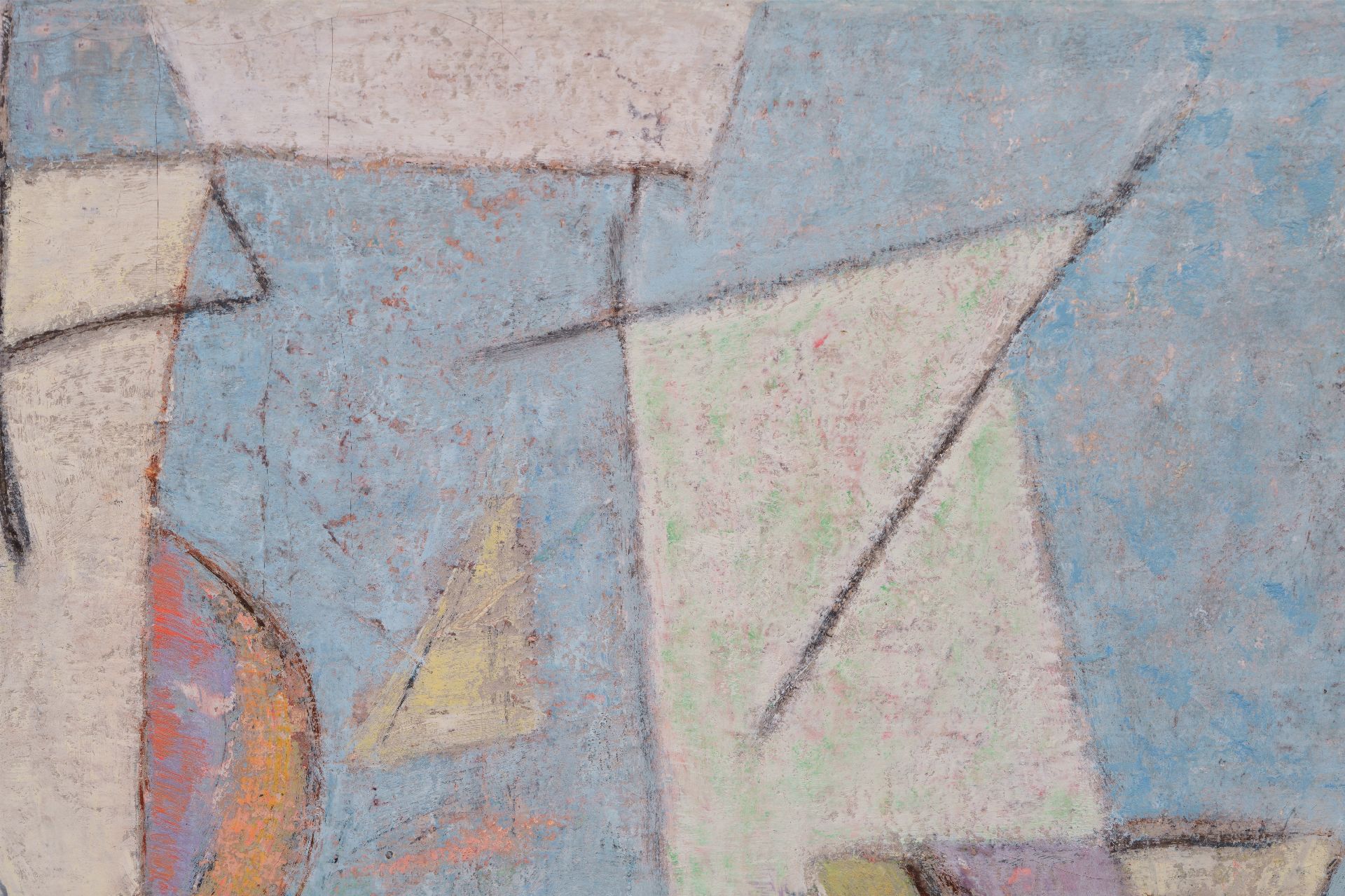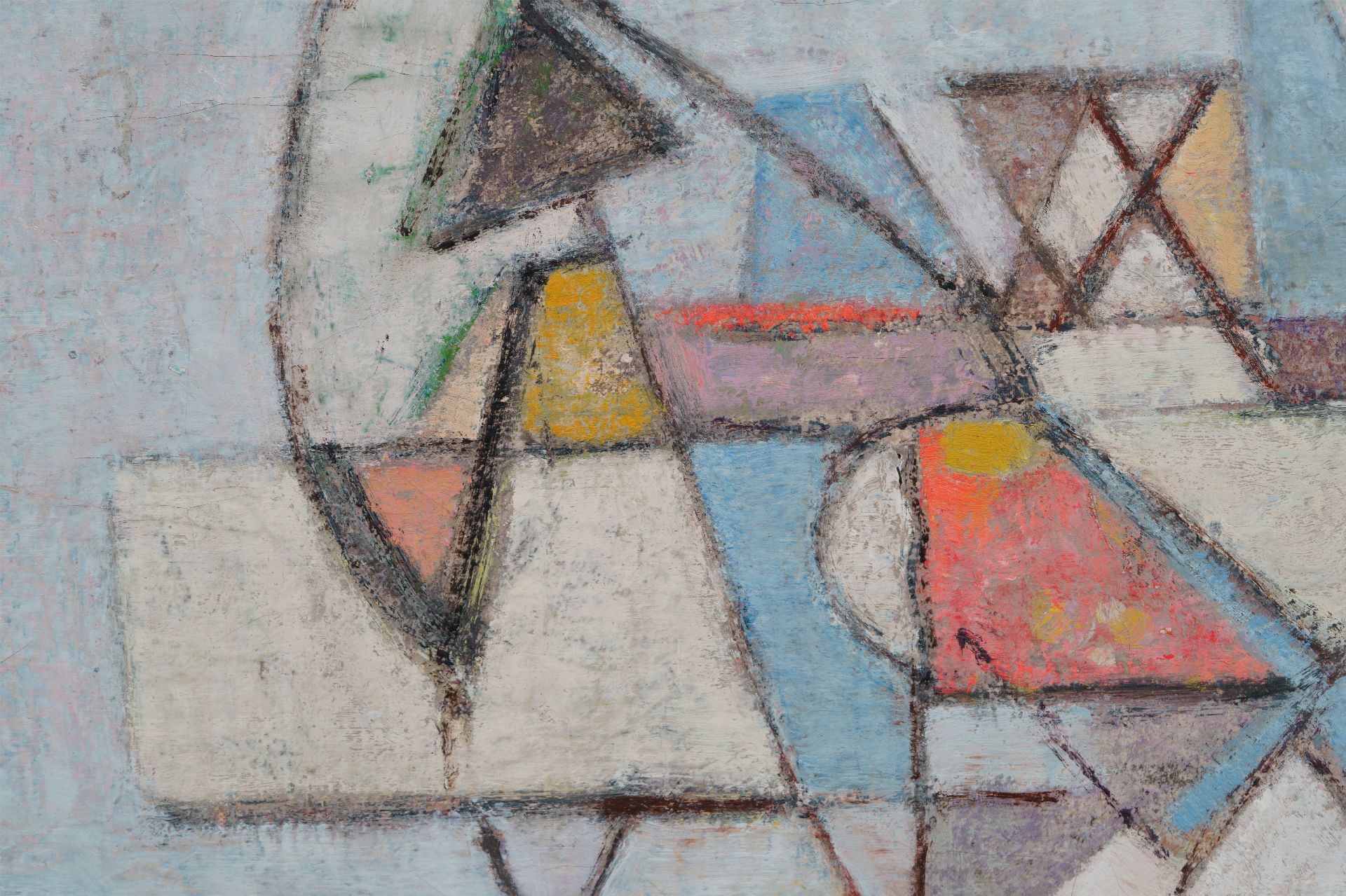 Geer van Velde ist einer der führenden Maler der Nachkriegs-École de Paris. Ursprünglich ein Anstreicher, schloss er sich 1925 seinem Bruder Bram in Paris an, um sich dort weiterzuentwickeln. Anfangs war seine Arbeit figurativer Expressionist. Insbesondere nach seinem Umzug nach Südfrankreich im Jahr 1938 fand er unter dem Einfluss des mediterranen Lichts seinen eigenen Stil; Die Realität vereinfachte sich auf vertikale, horizontale und diagonale Linien und Bereiche, die mit Farbe ausgefüllt sind. Dabei spielt die Reproduktion eines dünnen, gefilterten Lichts eine große Rolle. Figuren und Objekte sind in seiner Arbeit bis 1940 noch zu erkennen.